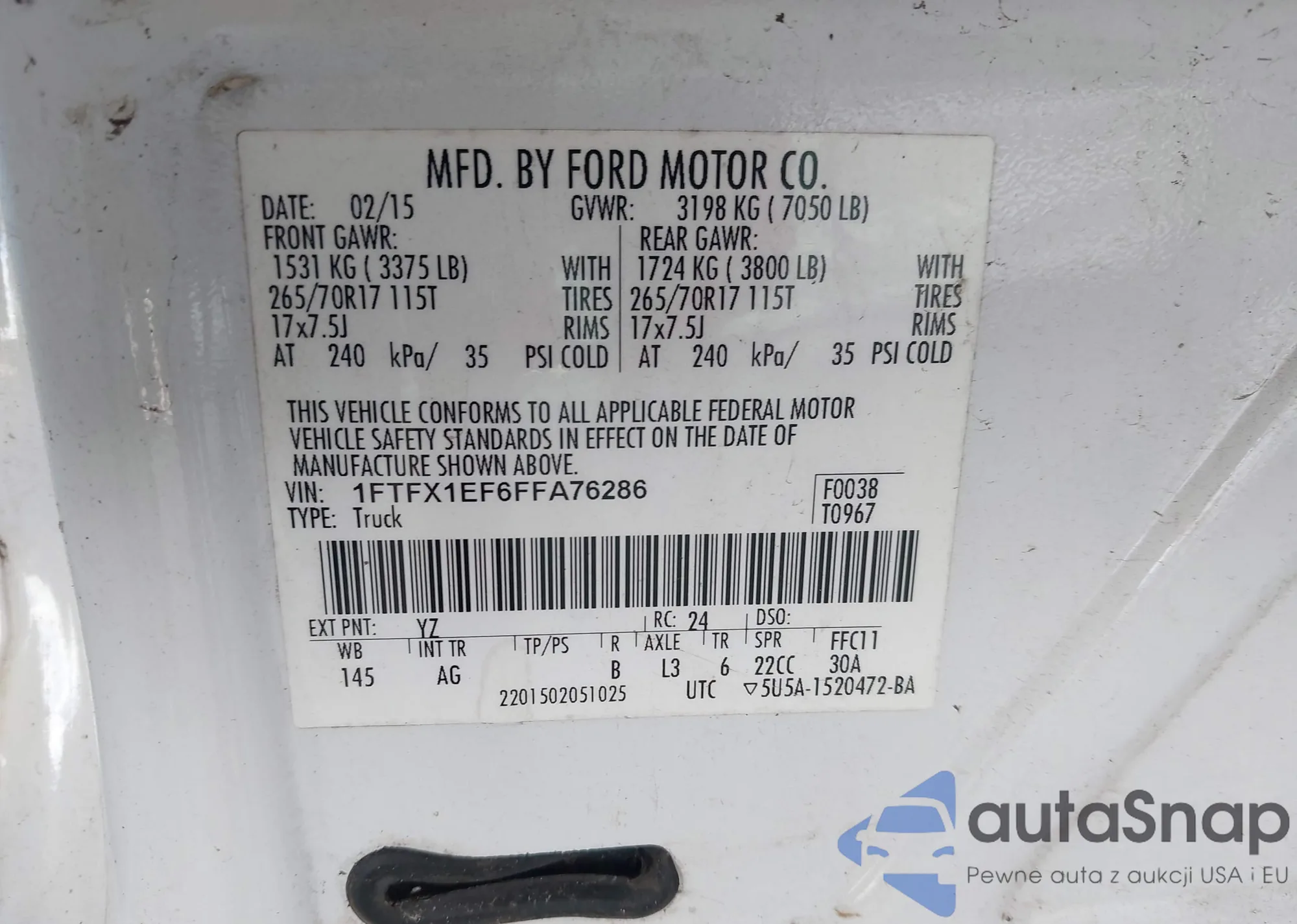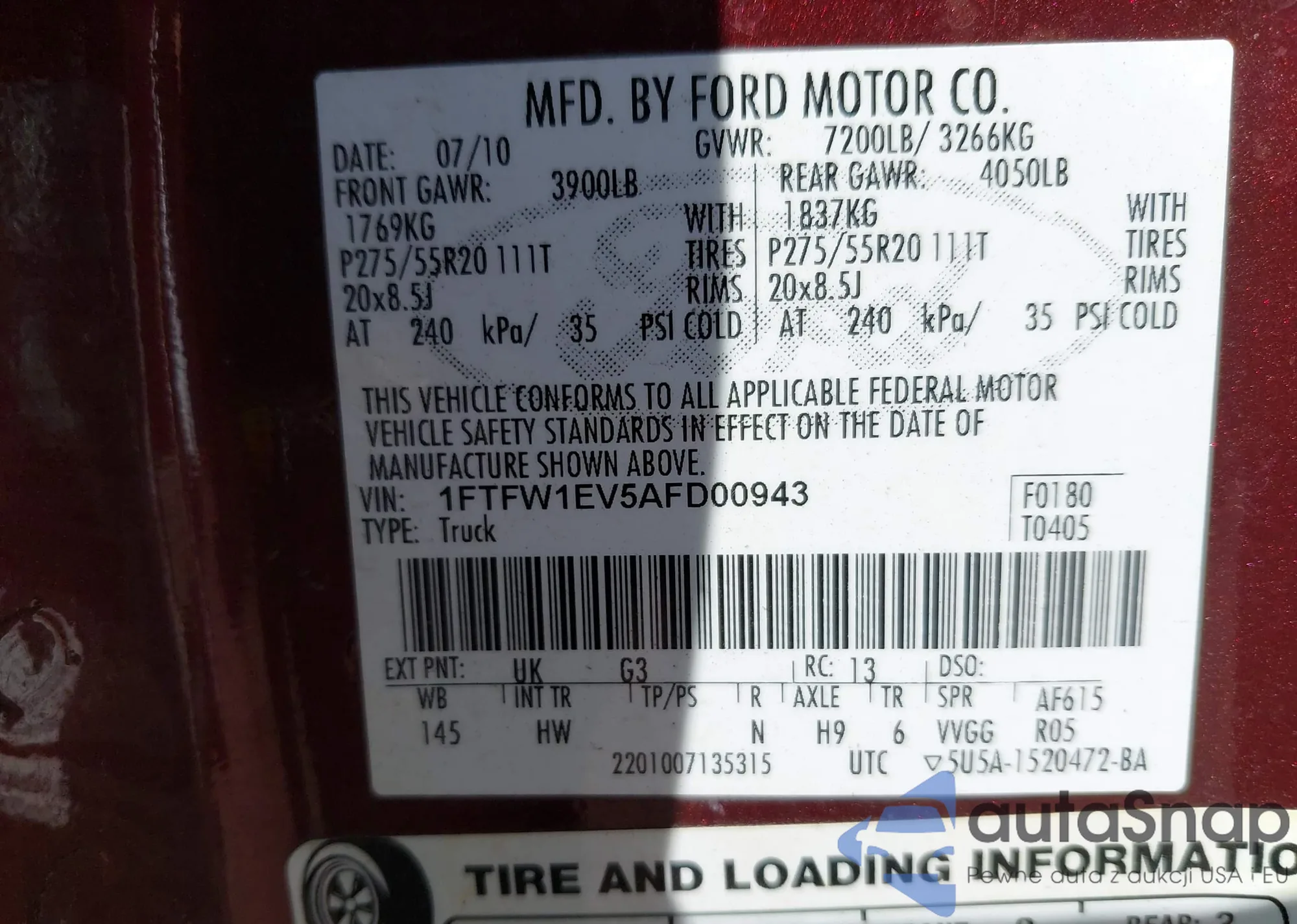 • VIN 1FTFW1EV5AFD00943