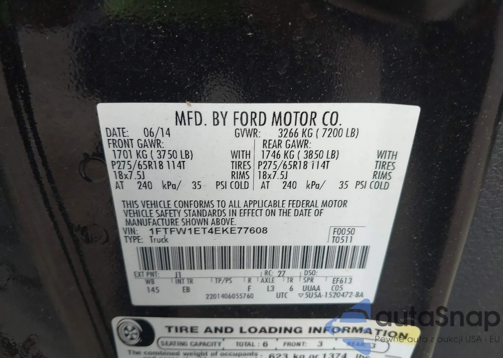• VIN 1FTFW1ET4EKE77608