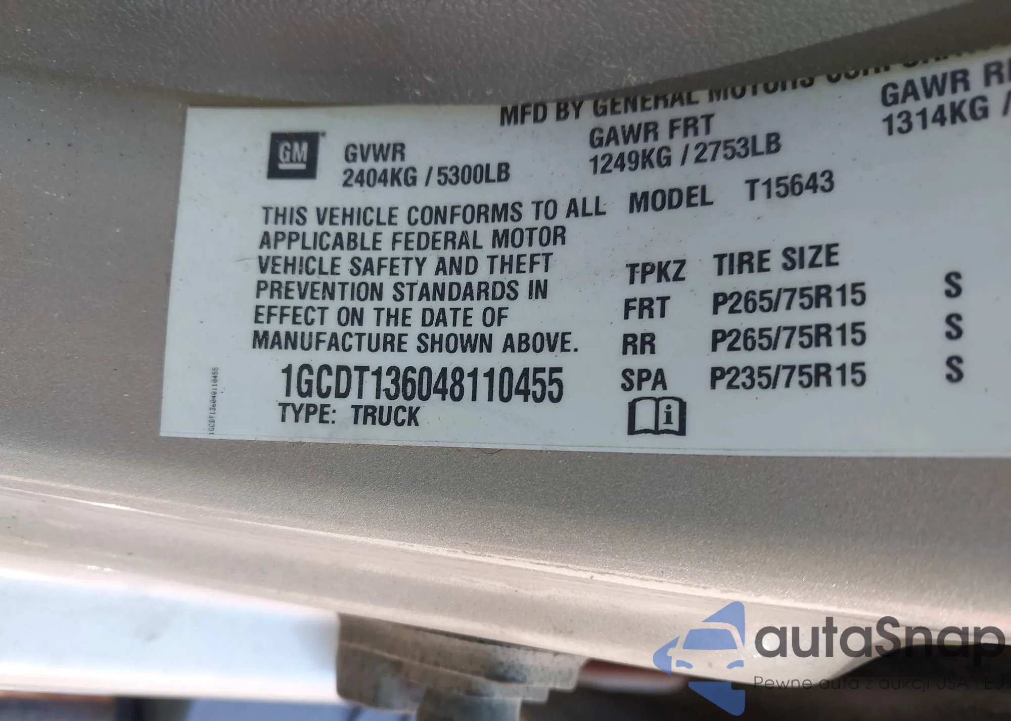 LOT: 42734170 VIN: 1G1ZS58FX8F114192