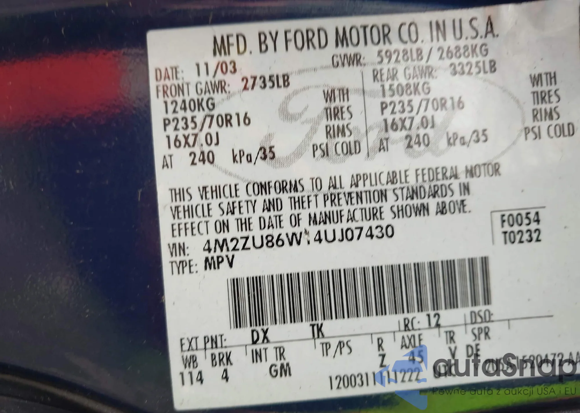 • VIN 4M2ZU86W14UJ07430