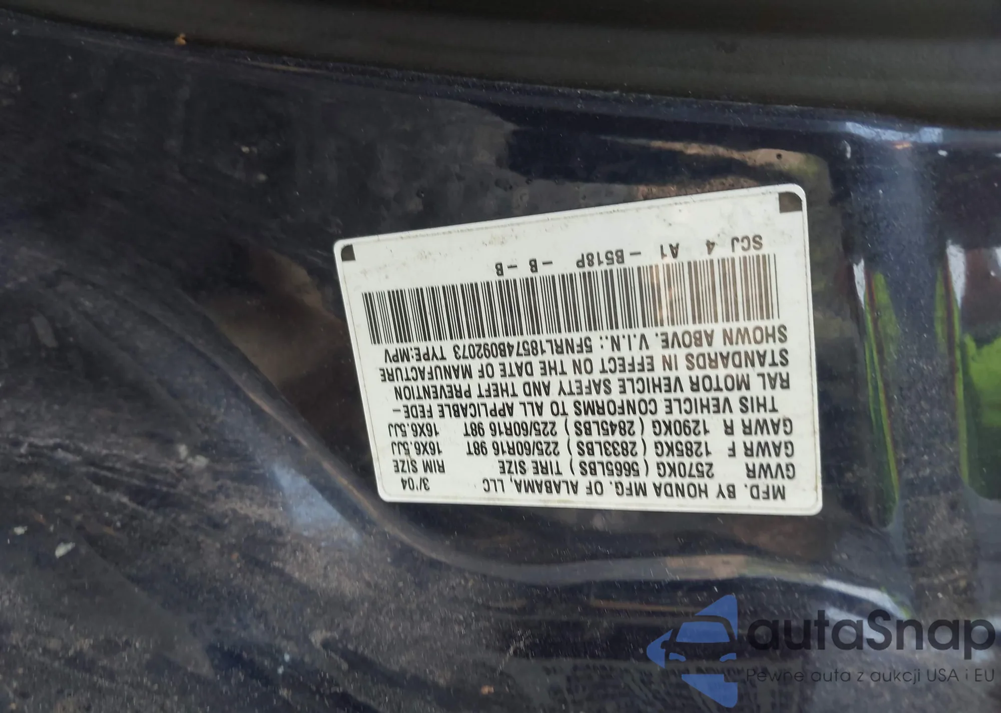 • VIN 5FNRL18574B092073