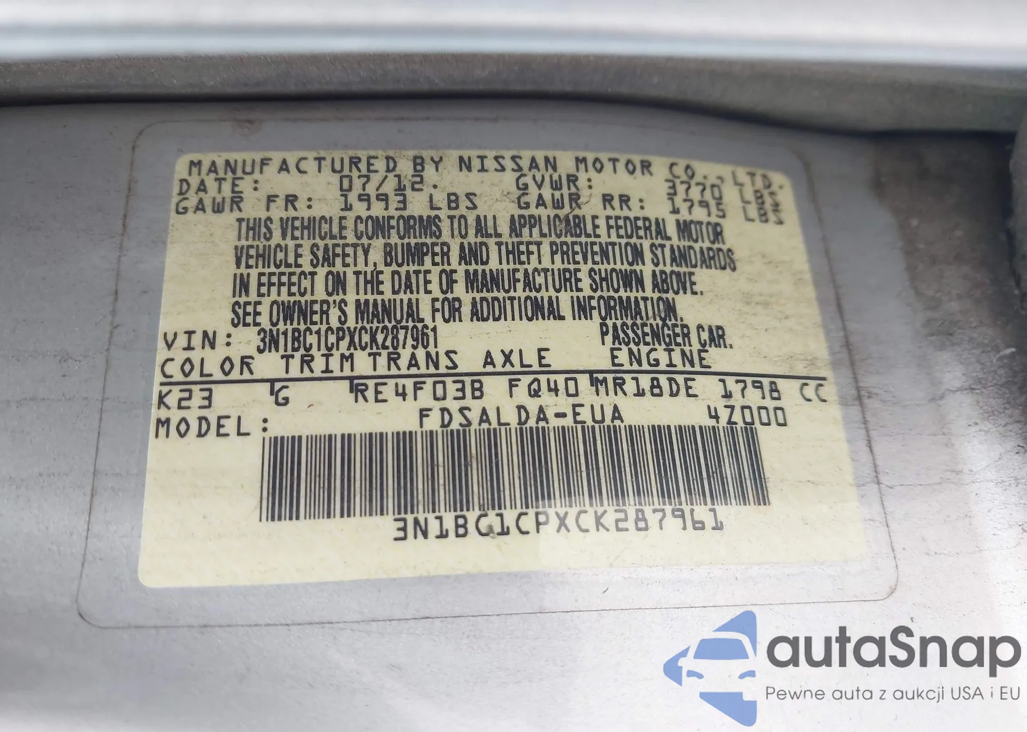 • VIN 3N1BC1CPXCK287961