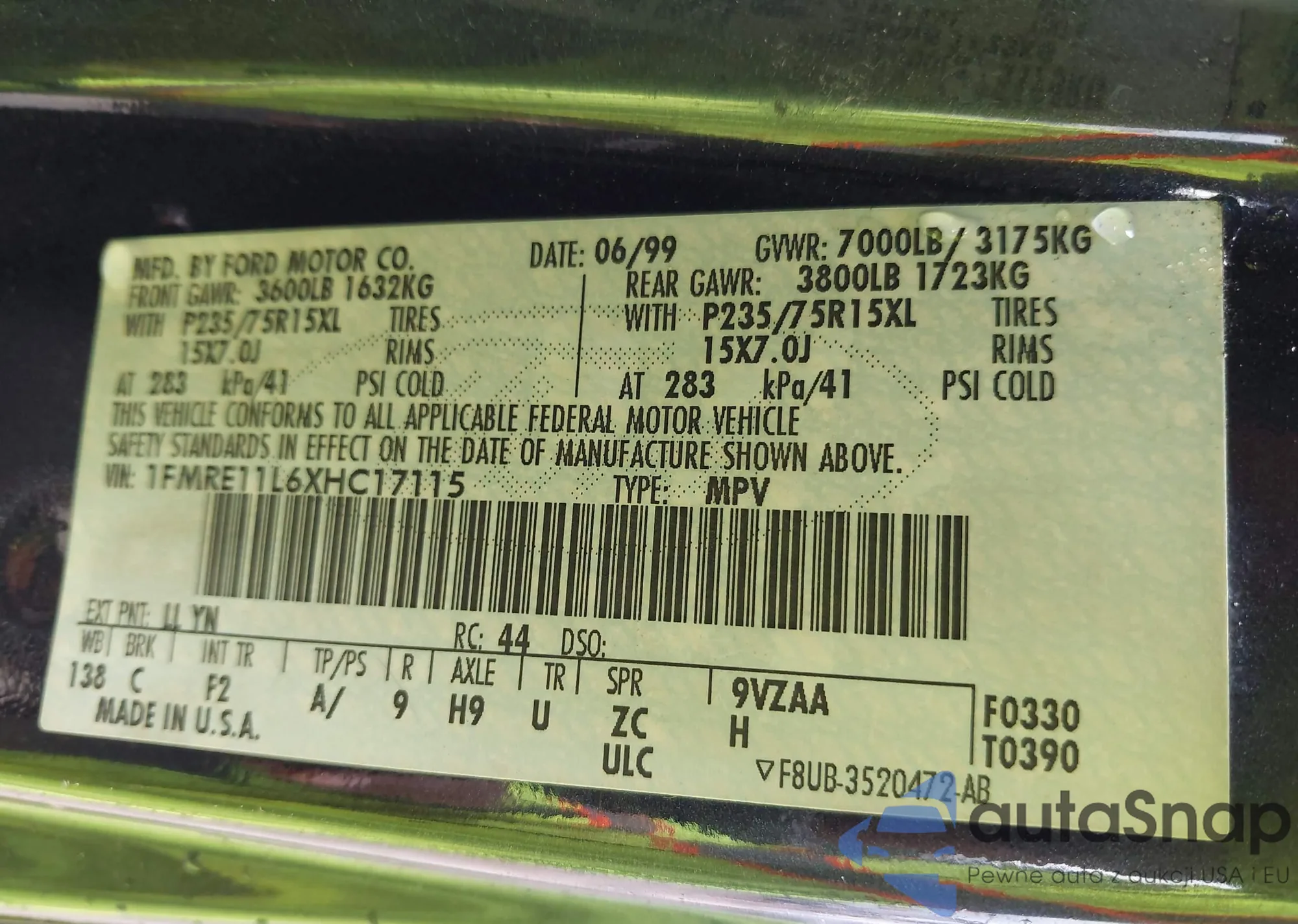 • VIN 1FMRE11L6XHC17115