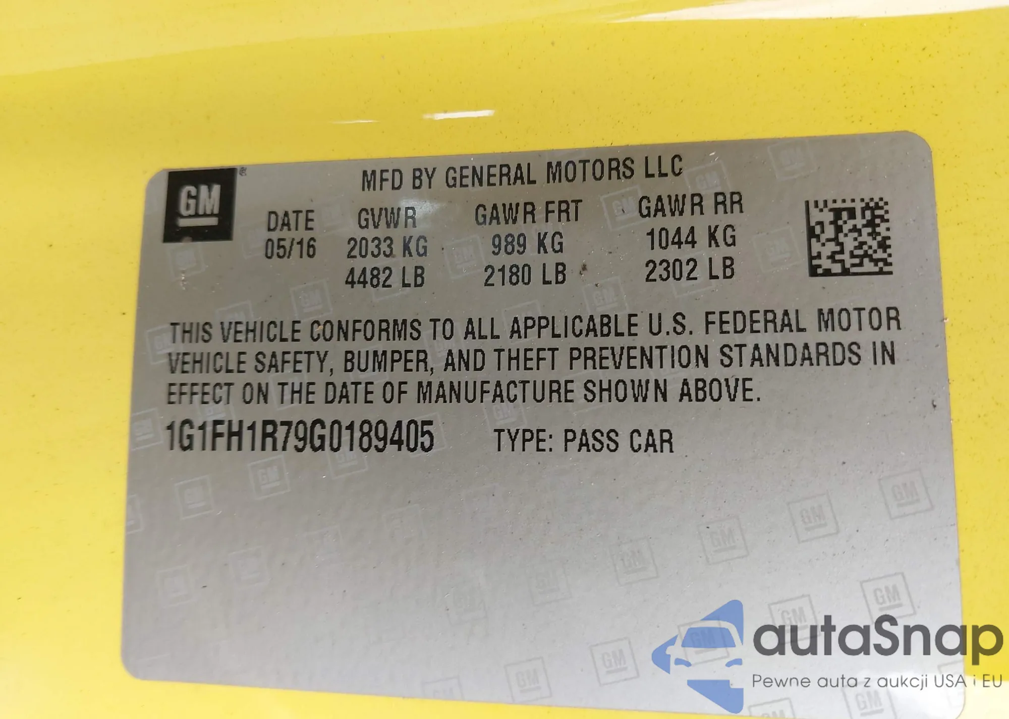 LOT: 43048922 VIN: 1G1FH1R79G0189405
