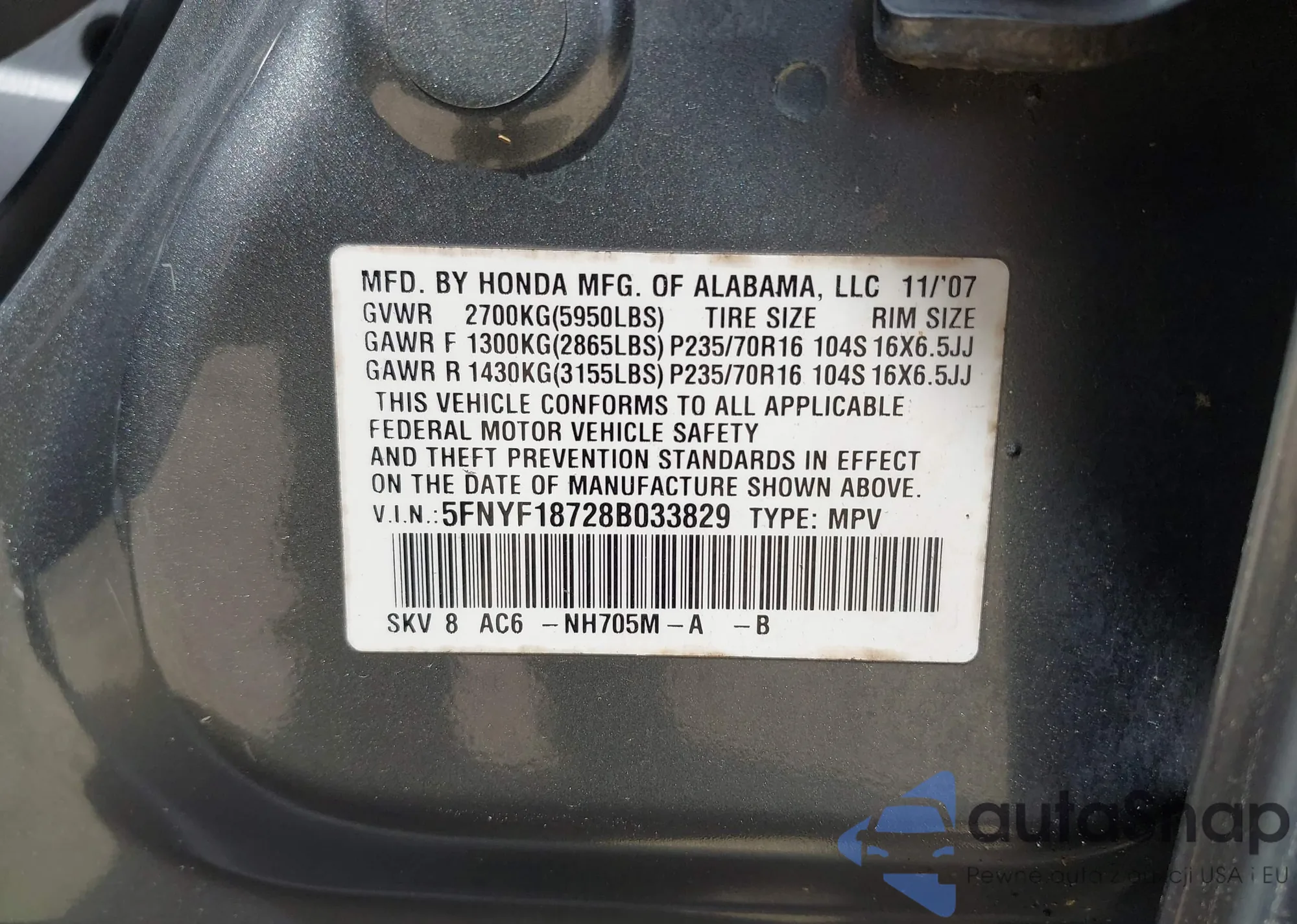 • VIN JHLRE48578C013891