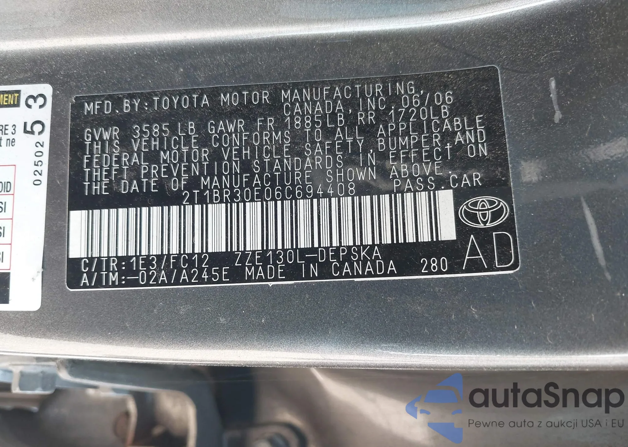 LOT: 43054880 VIN: 4T1BK36B67U200585