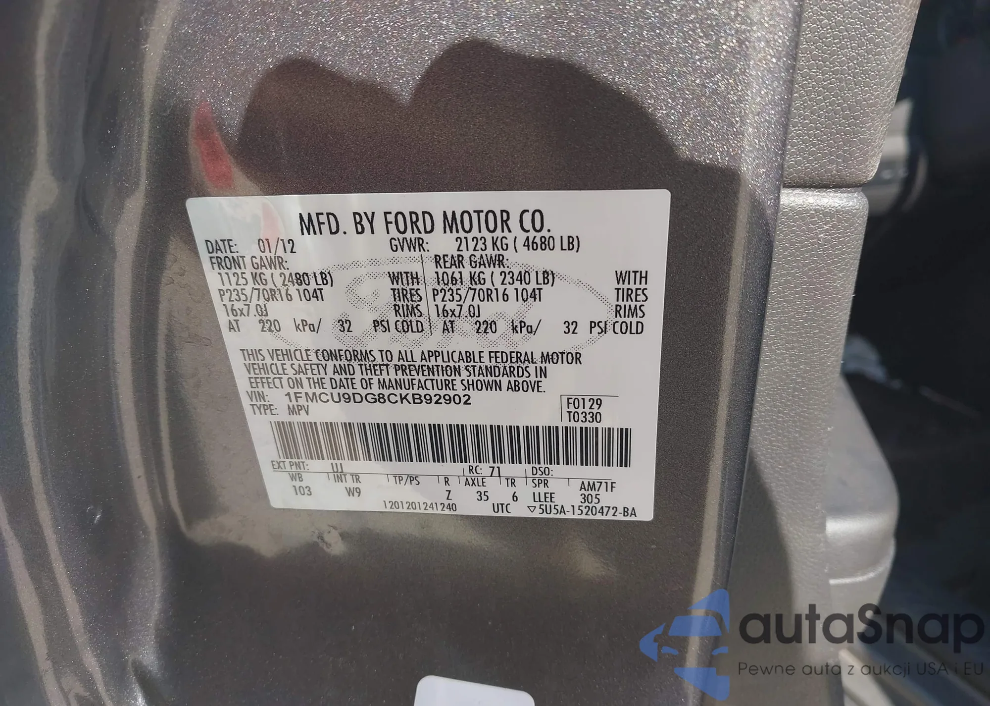 LOT: 43183354 VIN: 1FMCU9DG8CKB92902