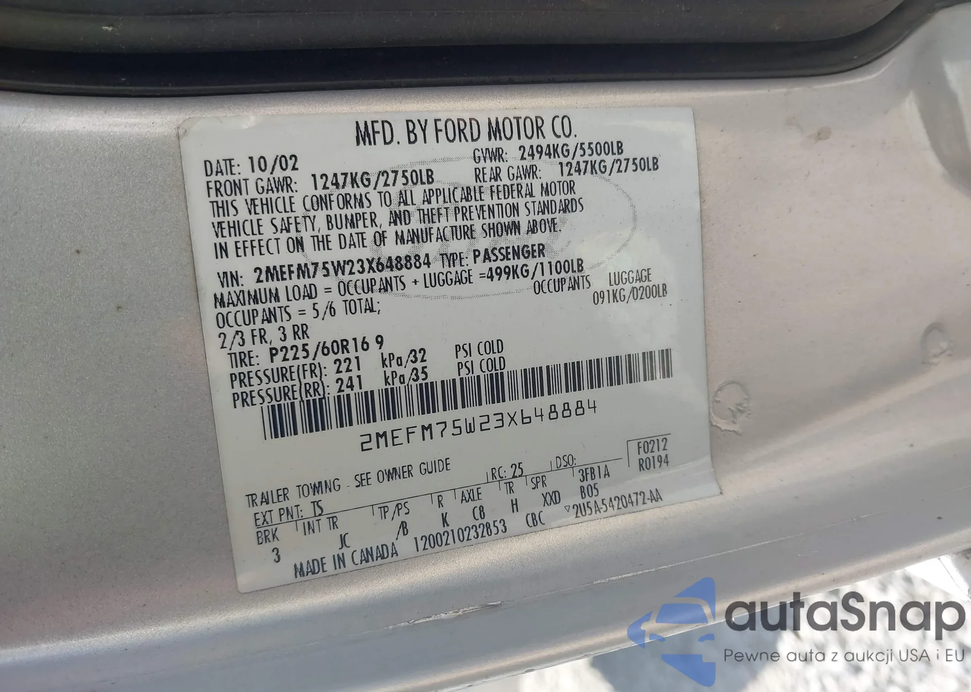 LOT: 43471684 VIN: 5UXFA53543LV92726