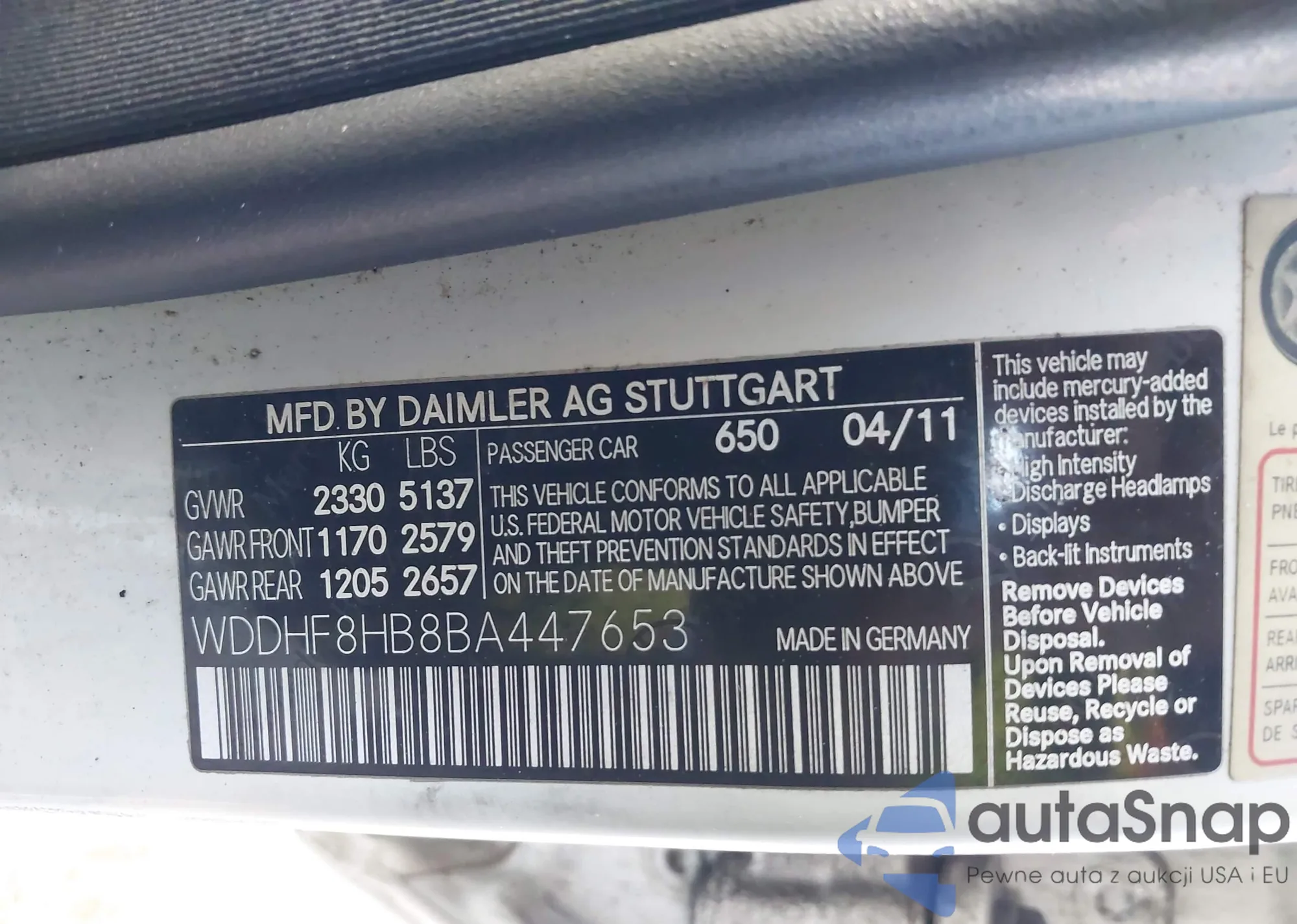 LOT: 43464118 VIN: WDDHF8HB8BA447653