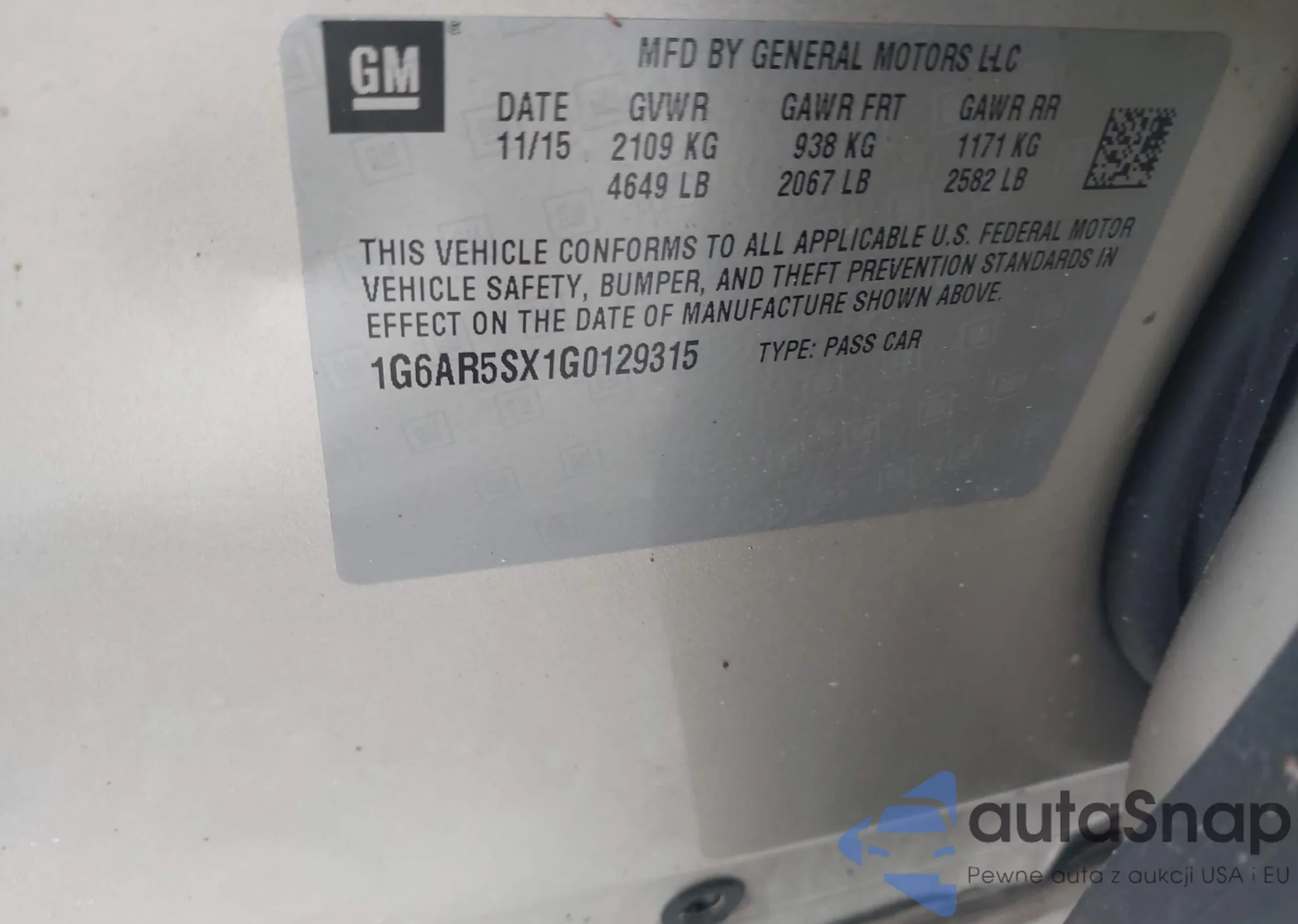 • VIN 1G6AR5SX1G0129315