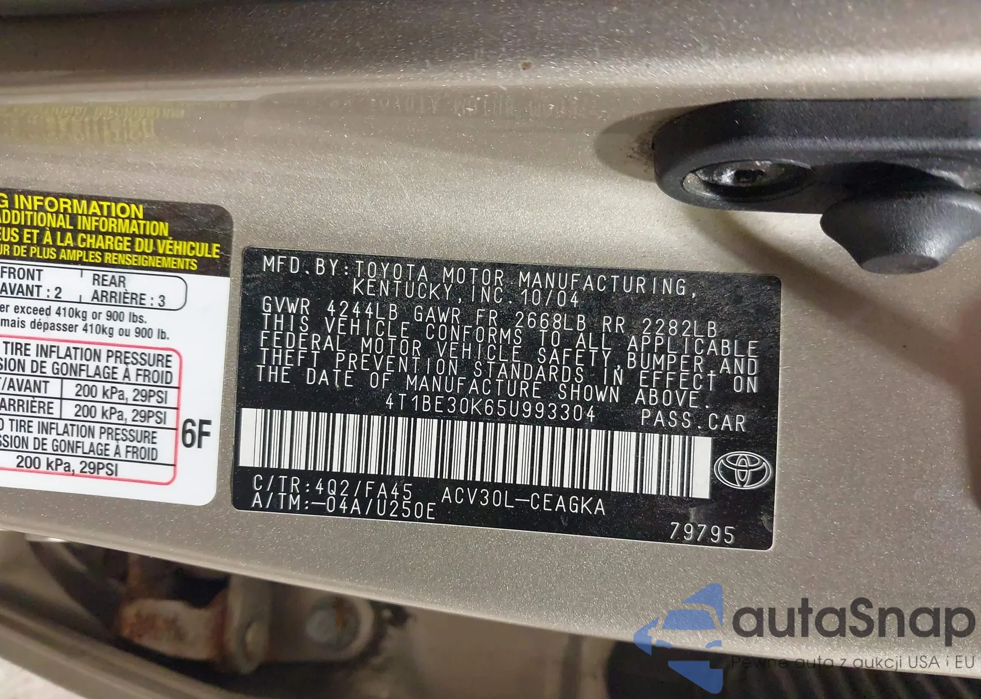 • VIN 4T1BE30K65U993304