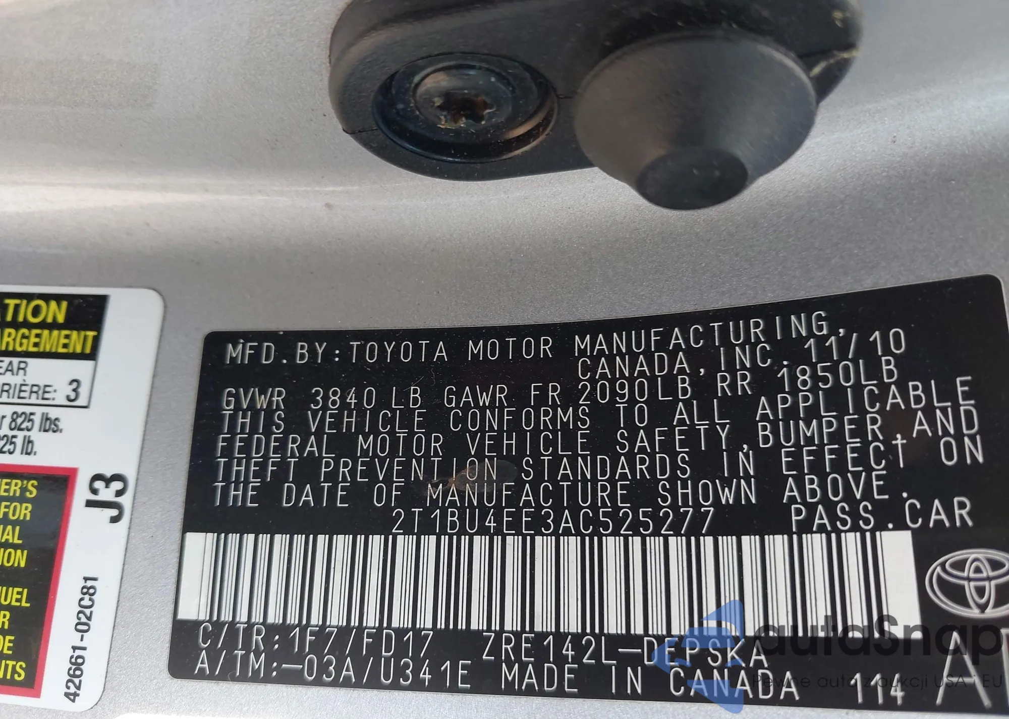 • VIN 2T1BU4EE3AC525277