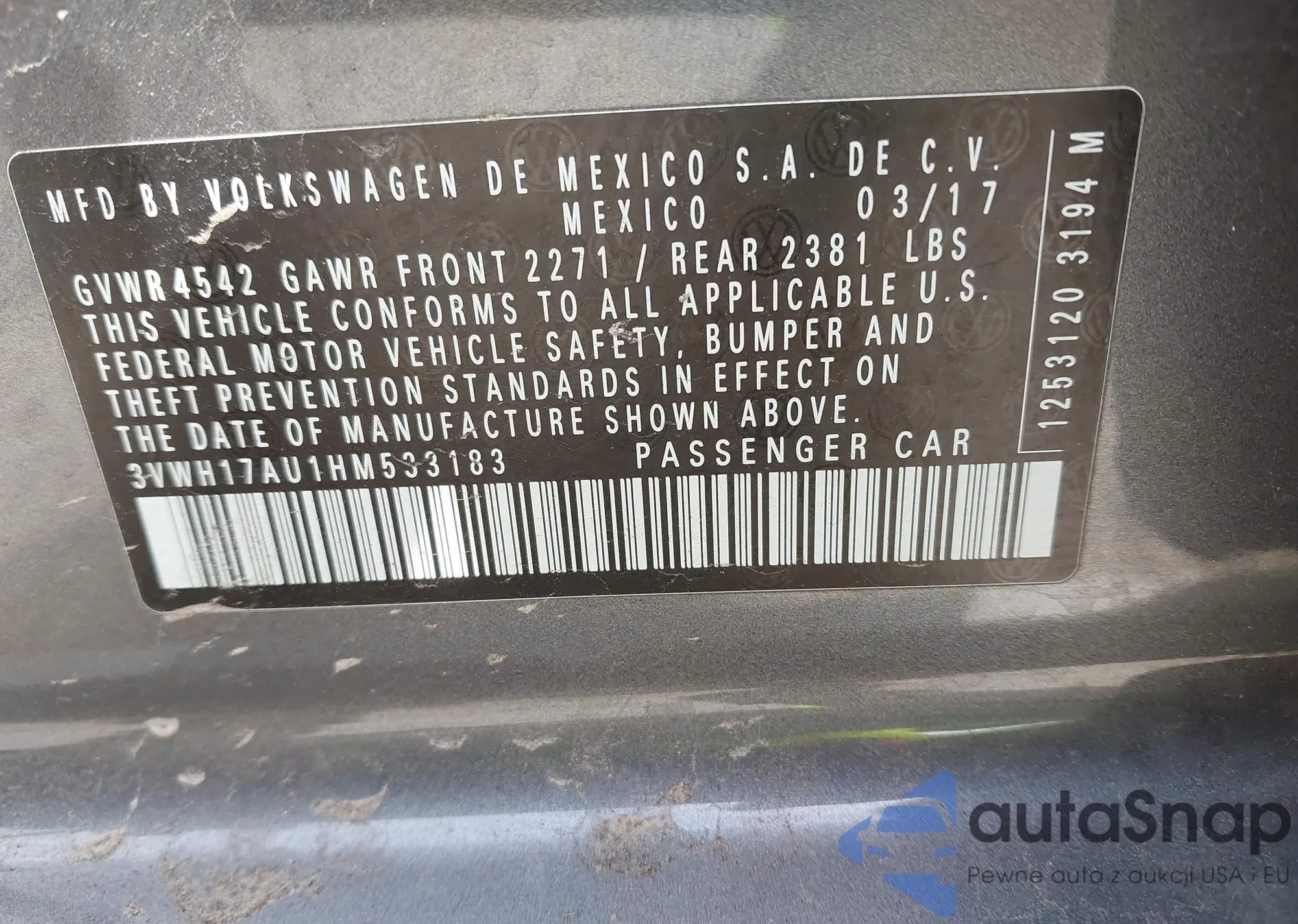 • VIN WDDGF8BB7CR227086