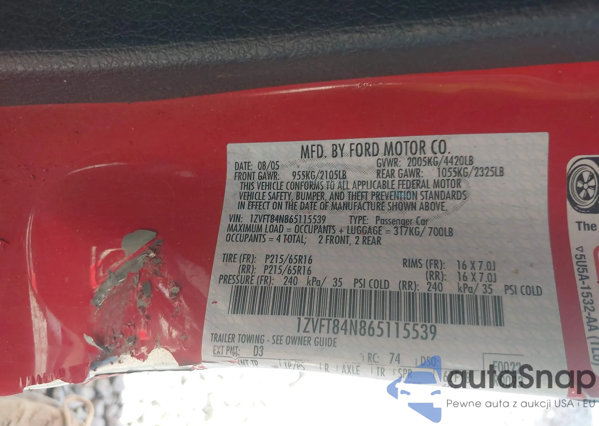 LOT: 43246203 VIN: 1ZVFT84N865115539