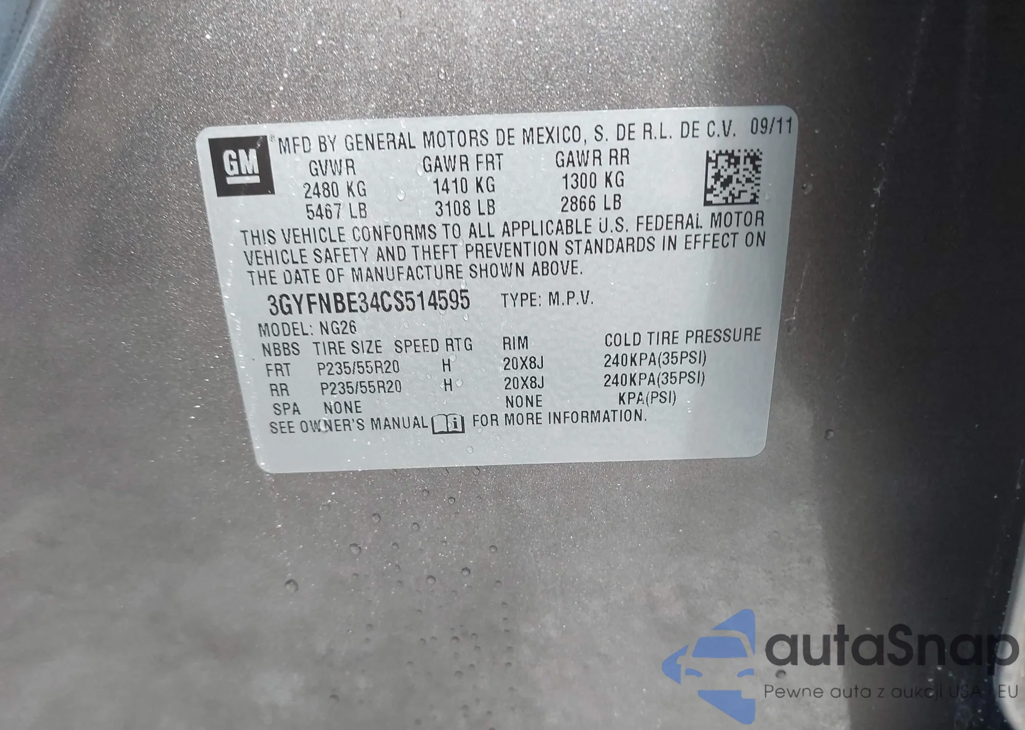 LOT: 42902474 VIN: 2CNDL73F956162415