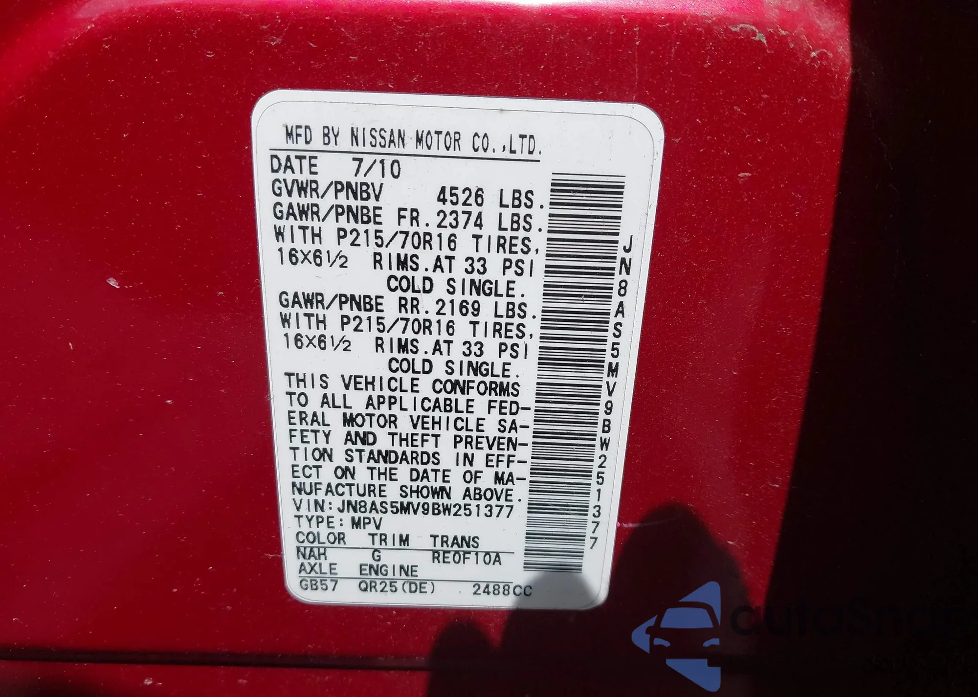 • VIN JN8AS58V49W184272