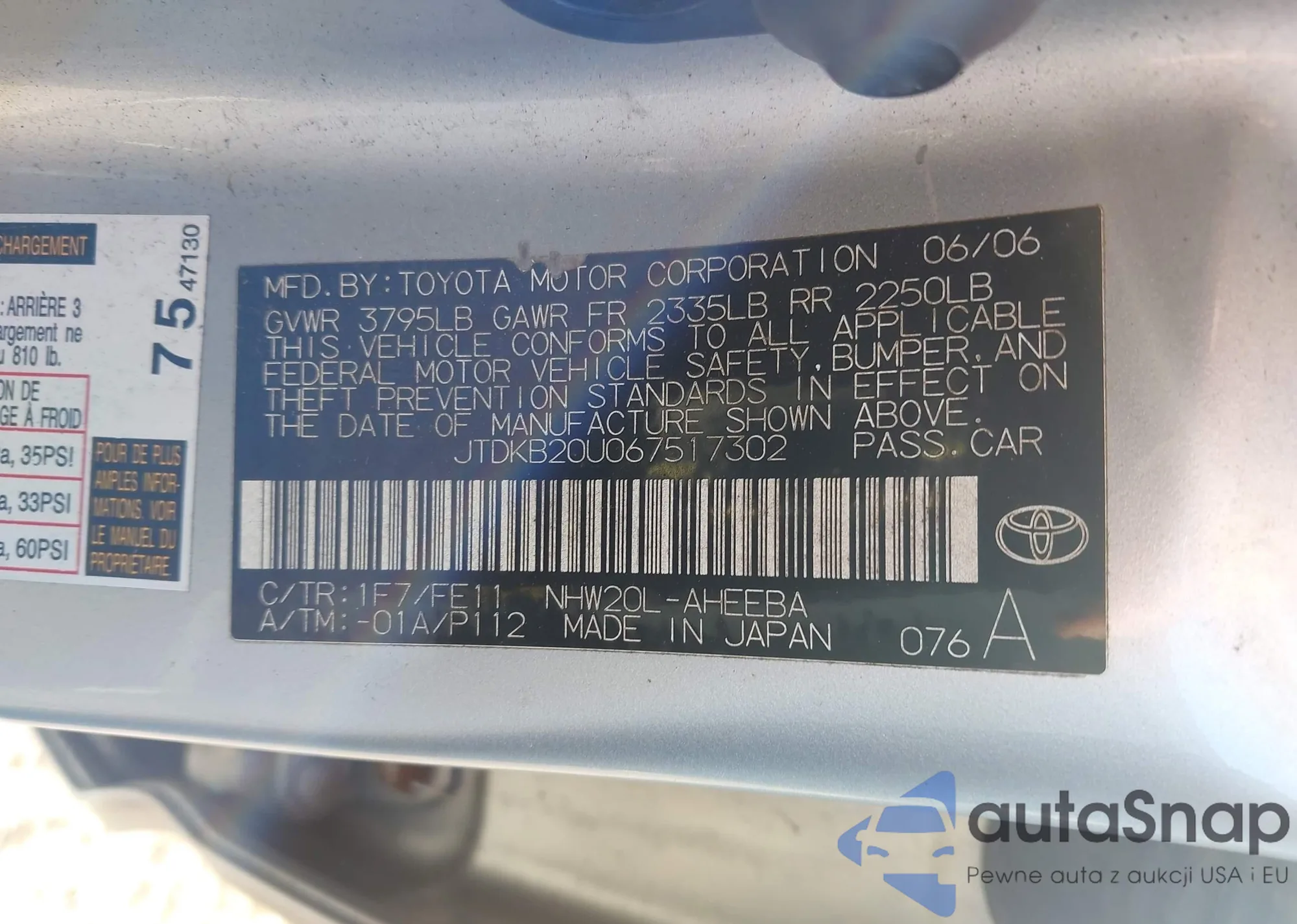 LOT: 43339390 VIN: 4T1BK36B06U065263