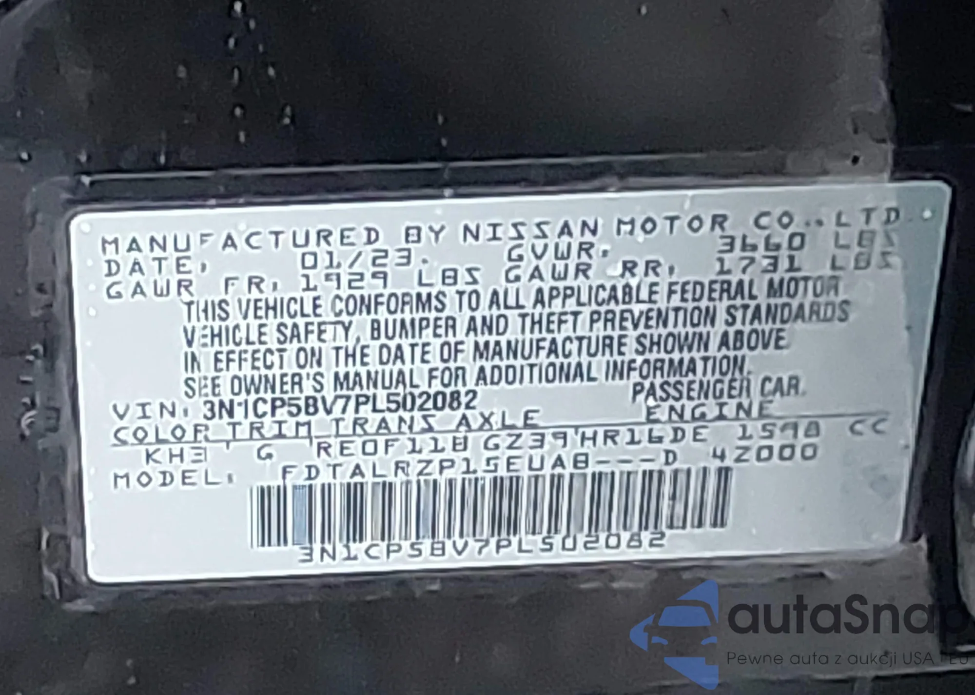 • VIN 3N1CP5BV7PL502082