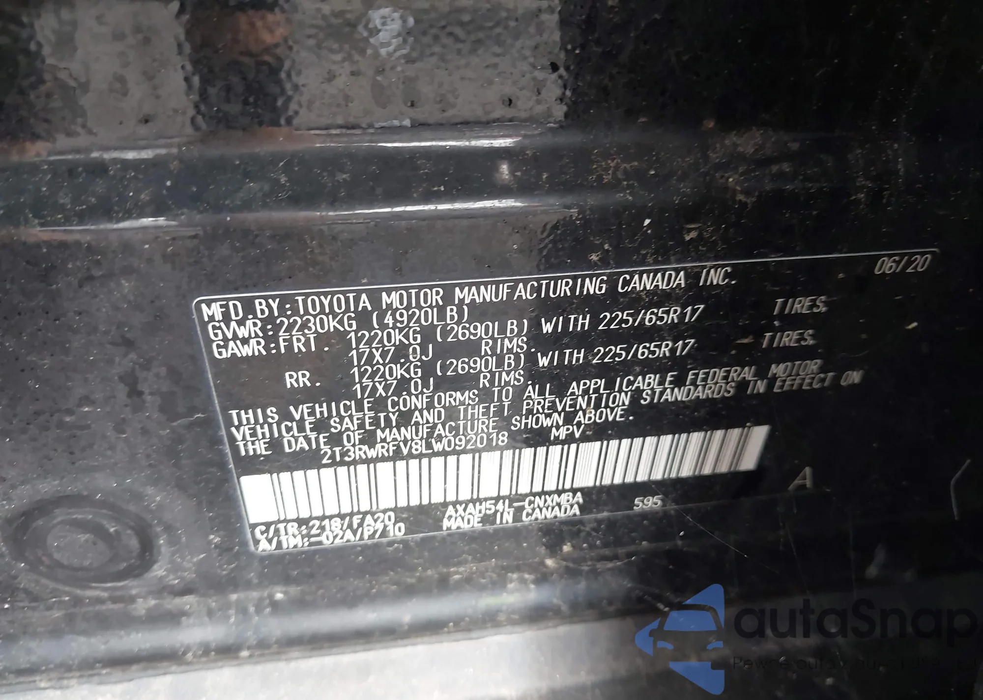 LOT: 42743745 VIN: 2T3RWRFV8LW092018