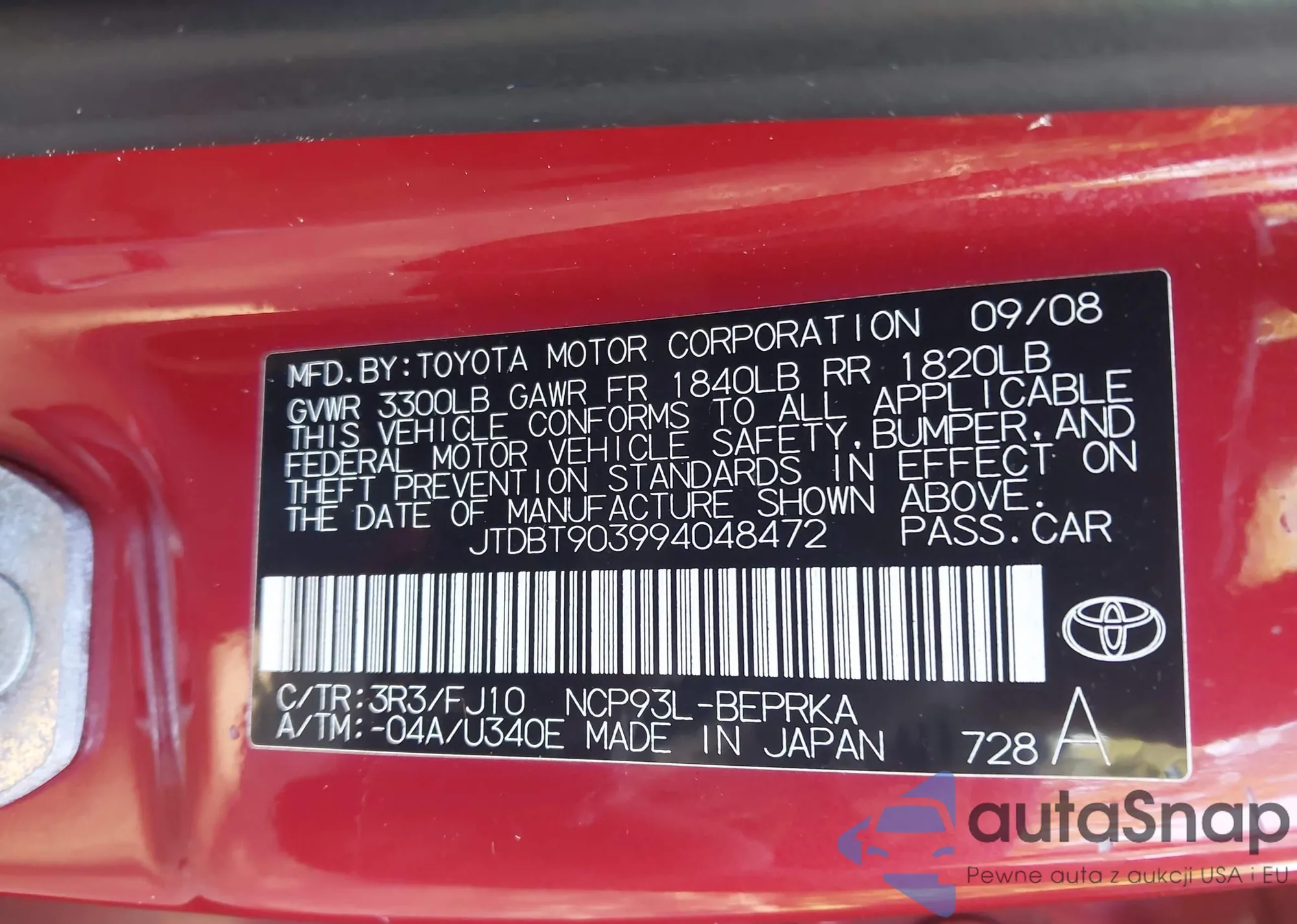 LOT: 43238949 VIN: JTDKB20U197828449