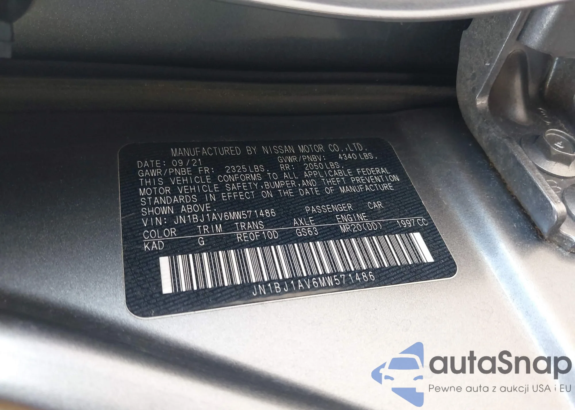 LOT: 39891781 VIN: JN1BJ1AV6MW571486