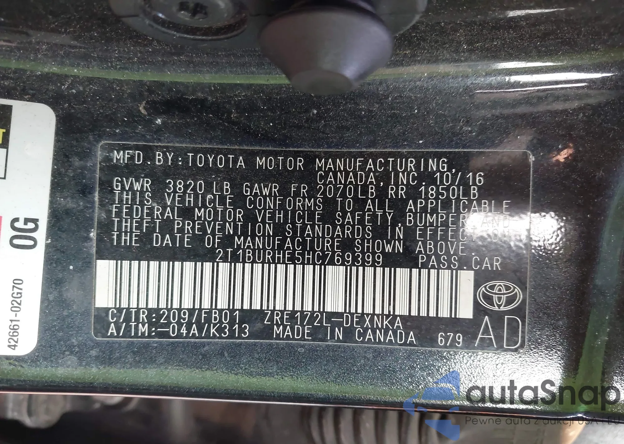 LOT: 42884874 VIN: 2T1BURHE7FC280502