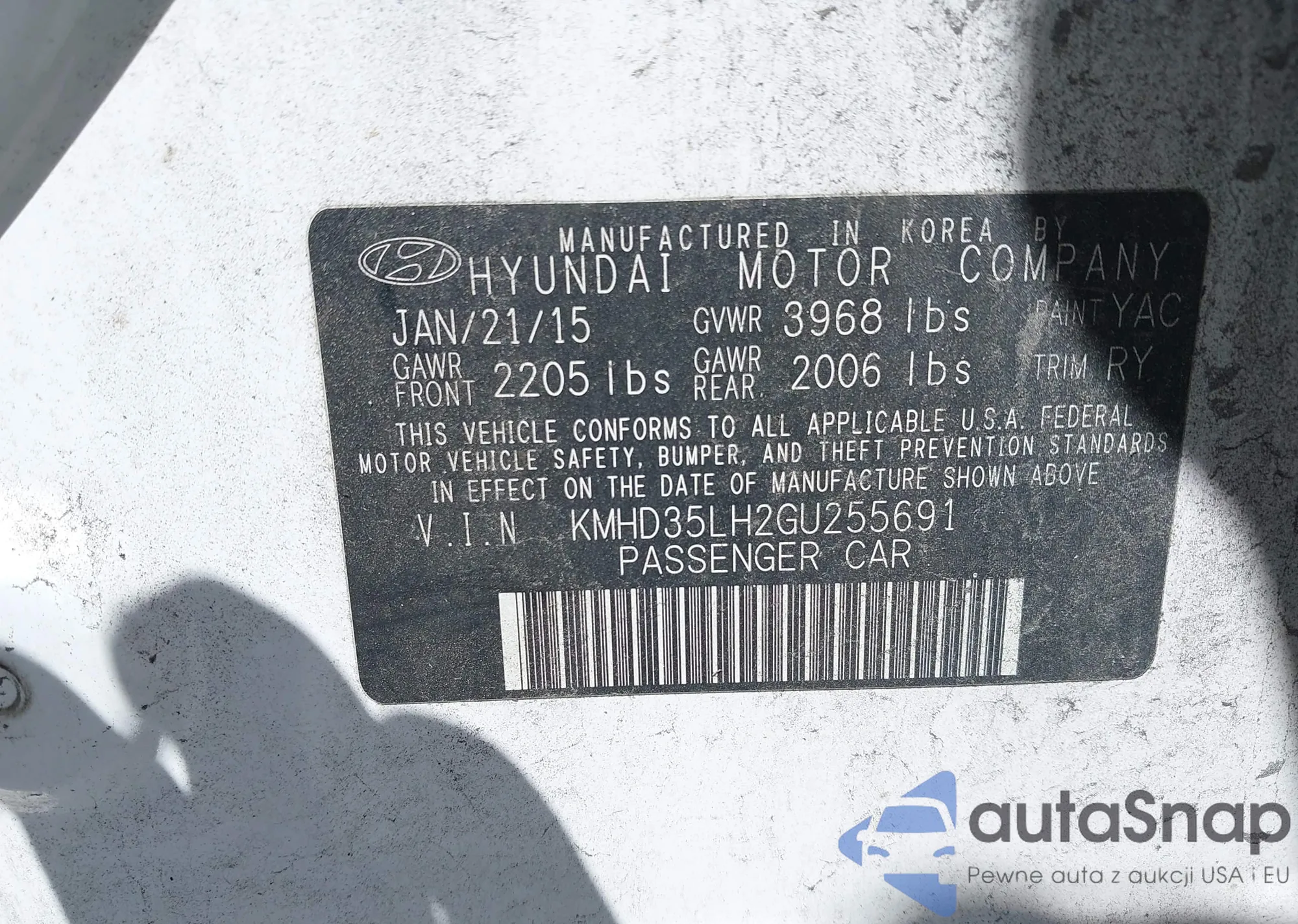 • VIN 5FRYD3H22FB005997