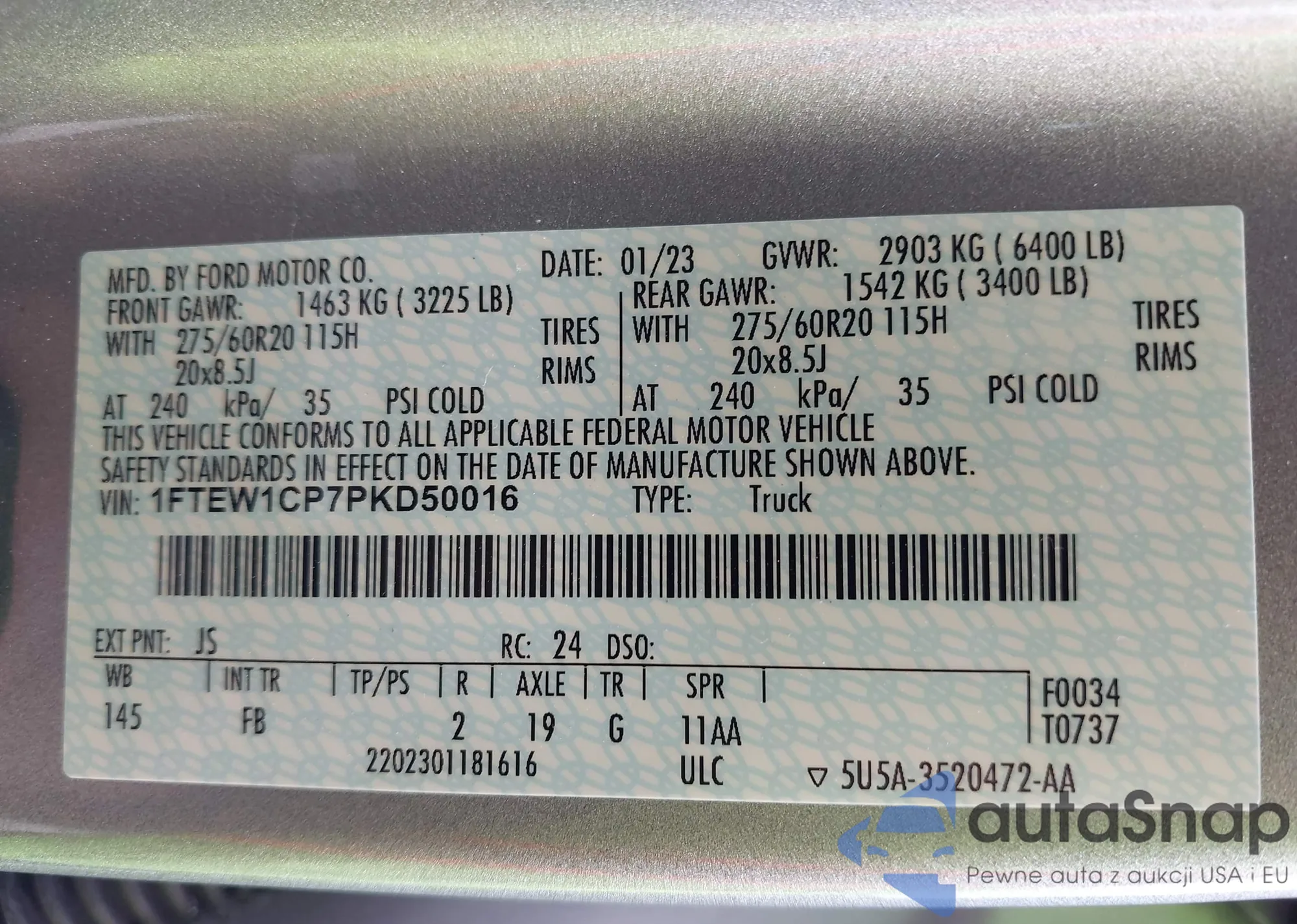 • VIN 1FTEW1CP7PKD50016