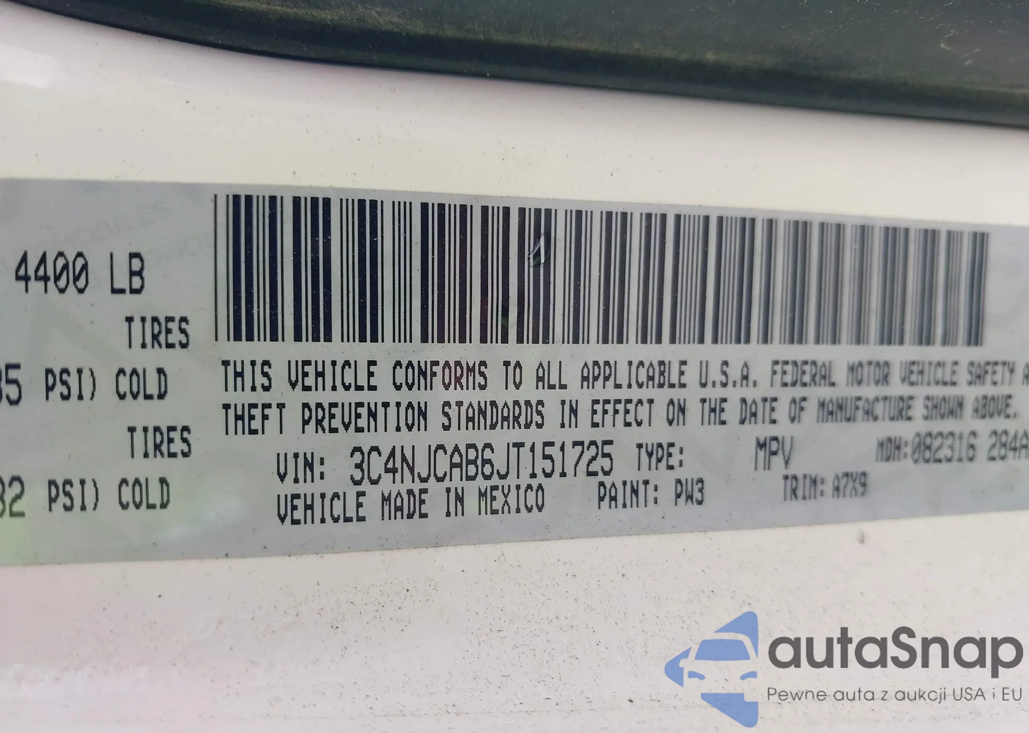 • VIN 3C4NJCAB6JT151725