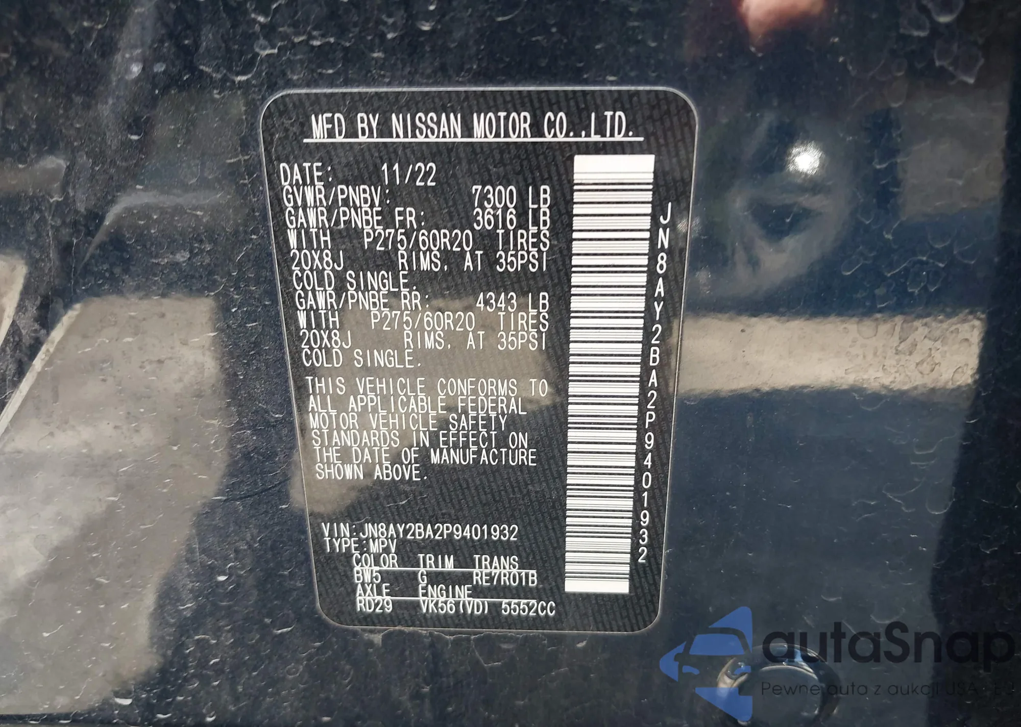 • VIN JN8AS5MV1CW406294