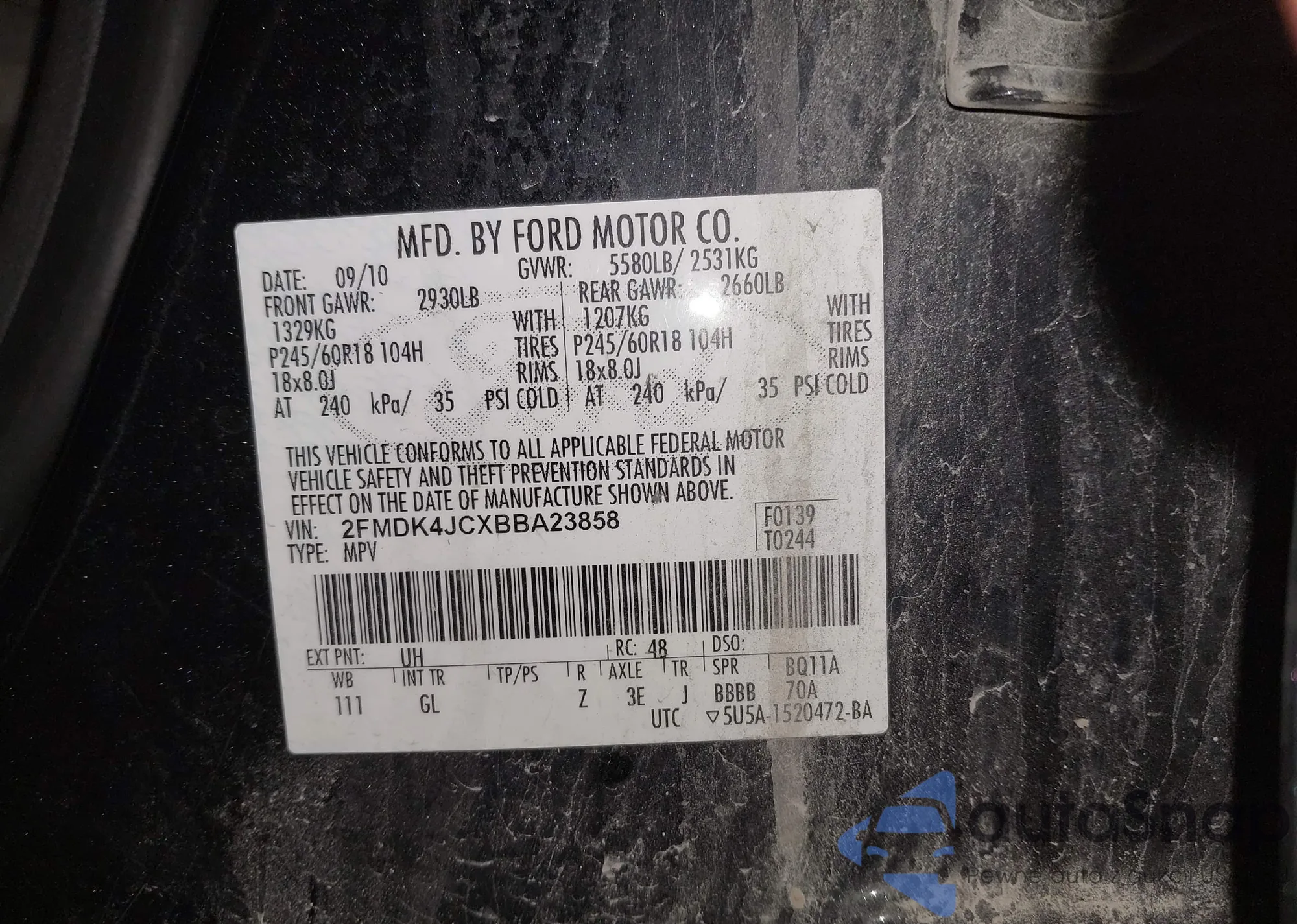• VIN 2FMDK4JCXBBA23858