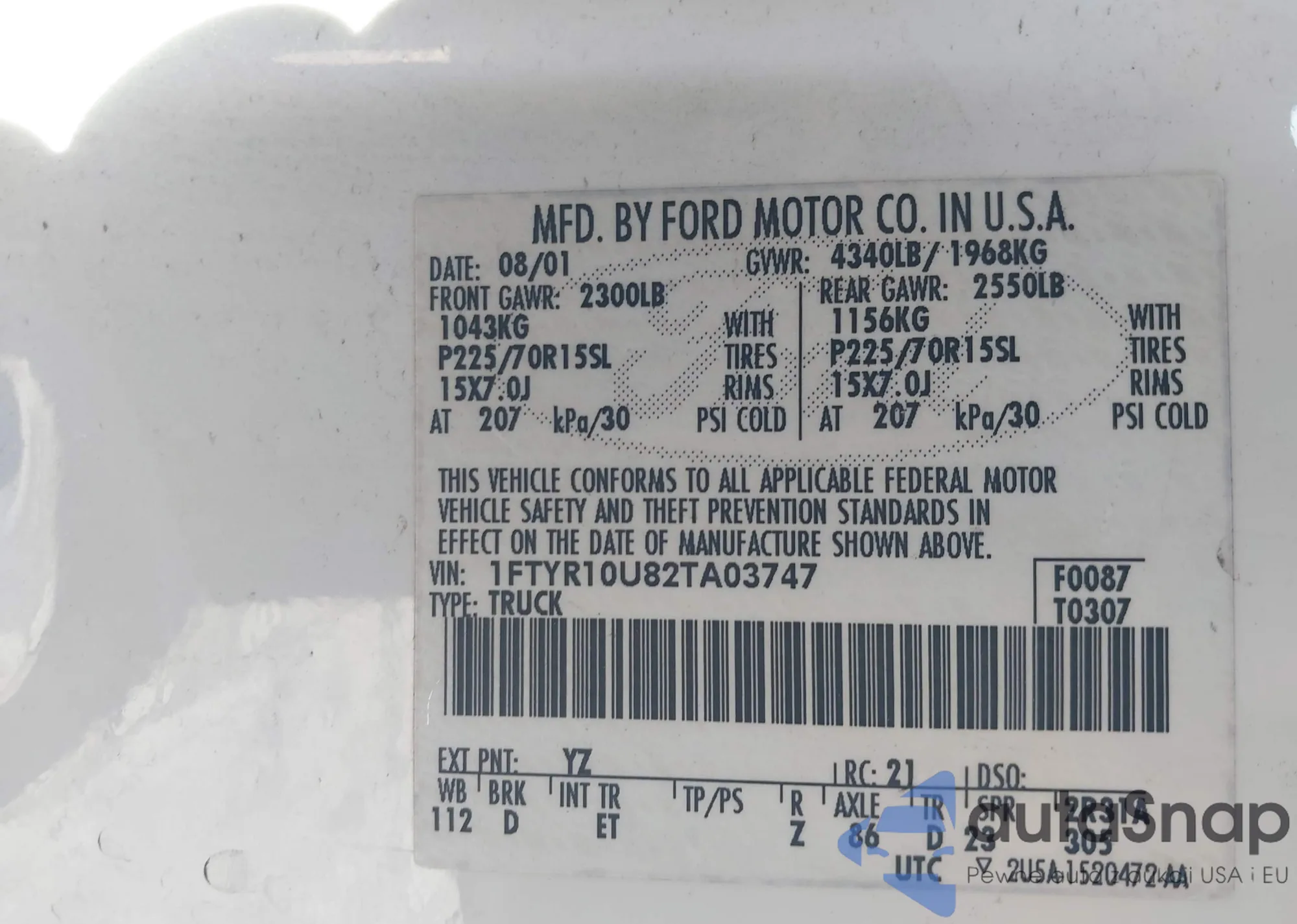 • VIN 1FTYR10U82TA03747