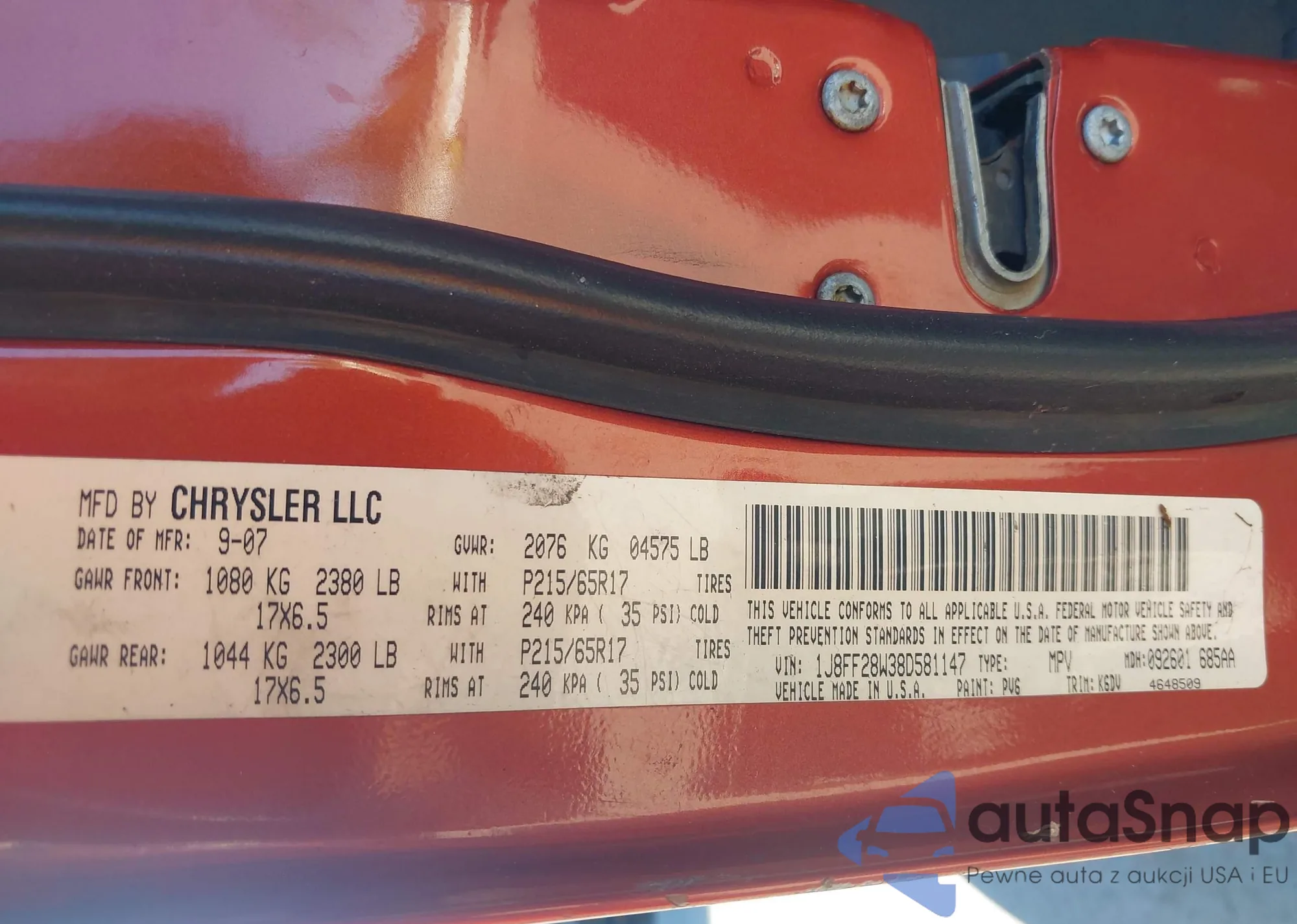 LOT: 43504458 VIN: 1J8FF28W38D581147
