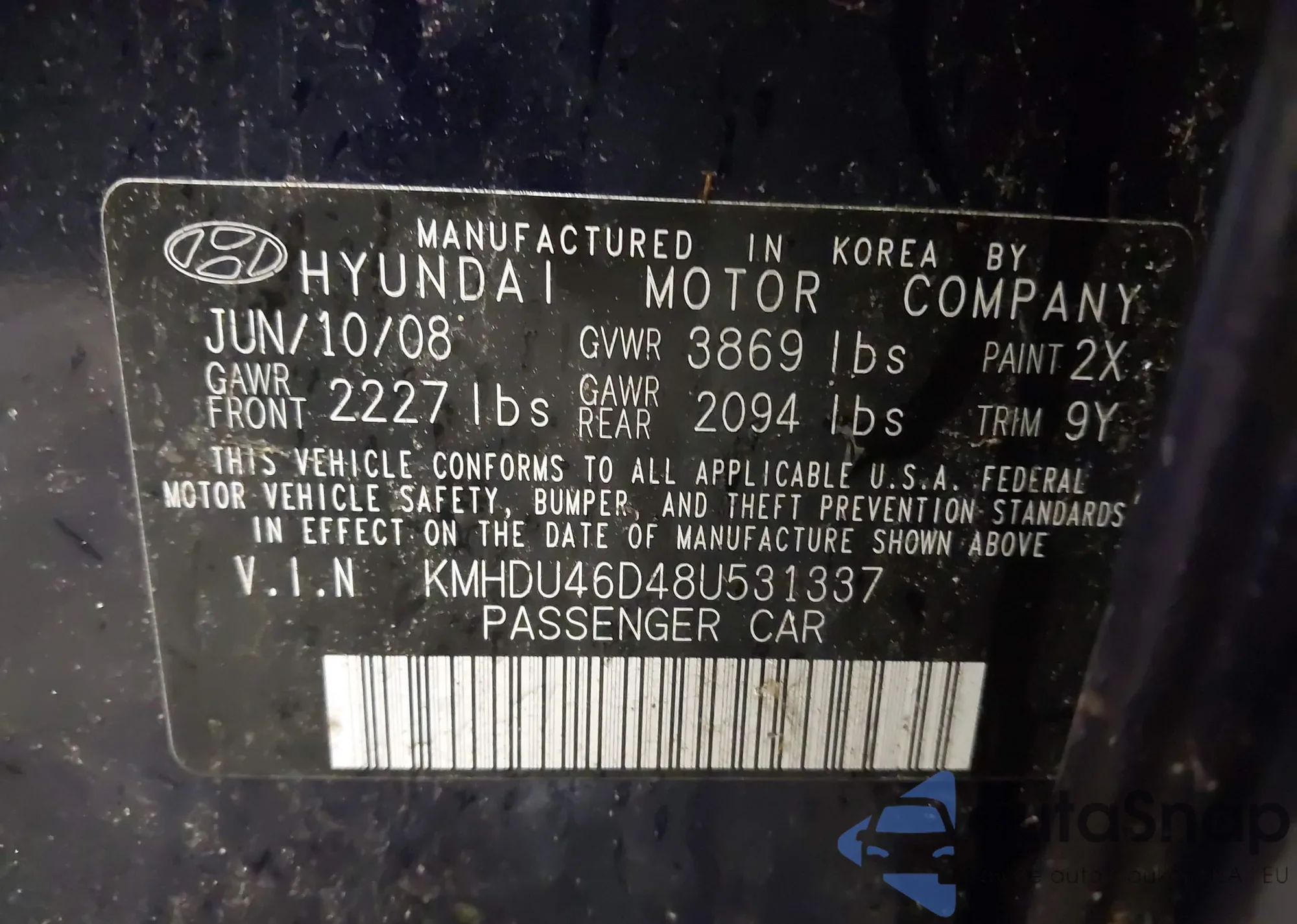 • VIN 2HGFB2F84DH501182