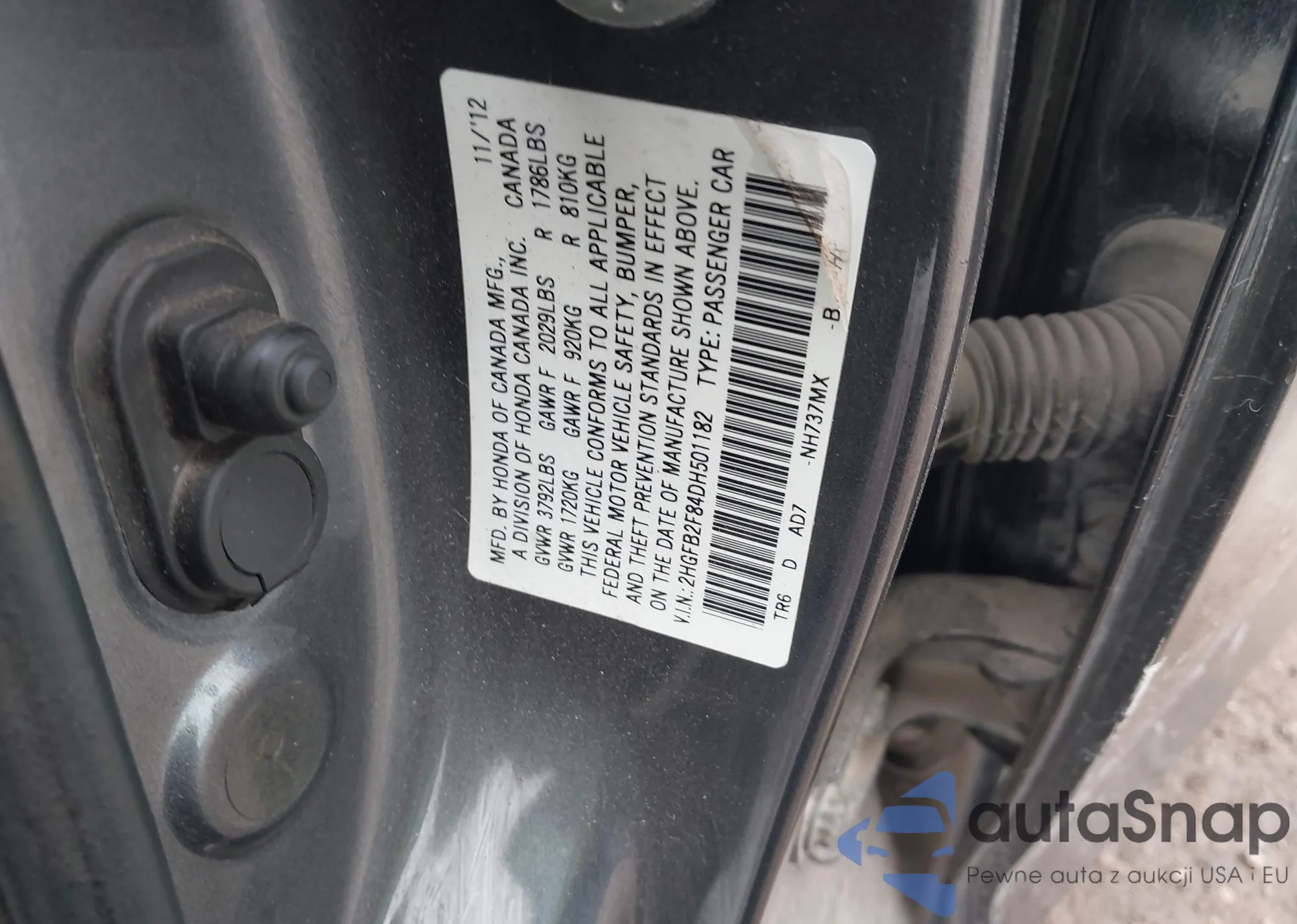 LOT: 43502138 VIN: 2HGFB2F84DH501182