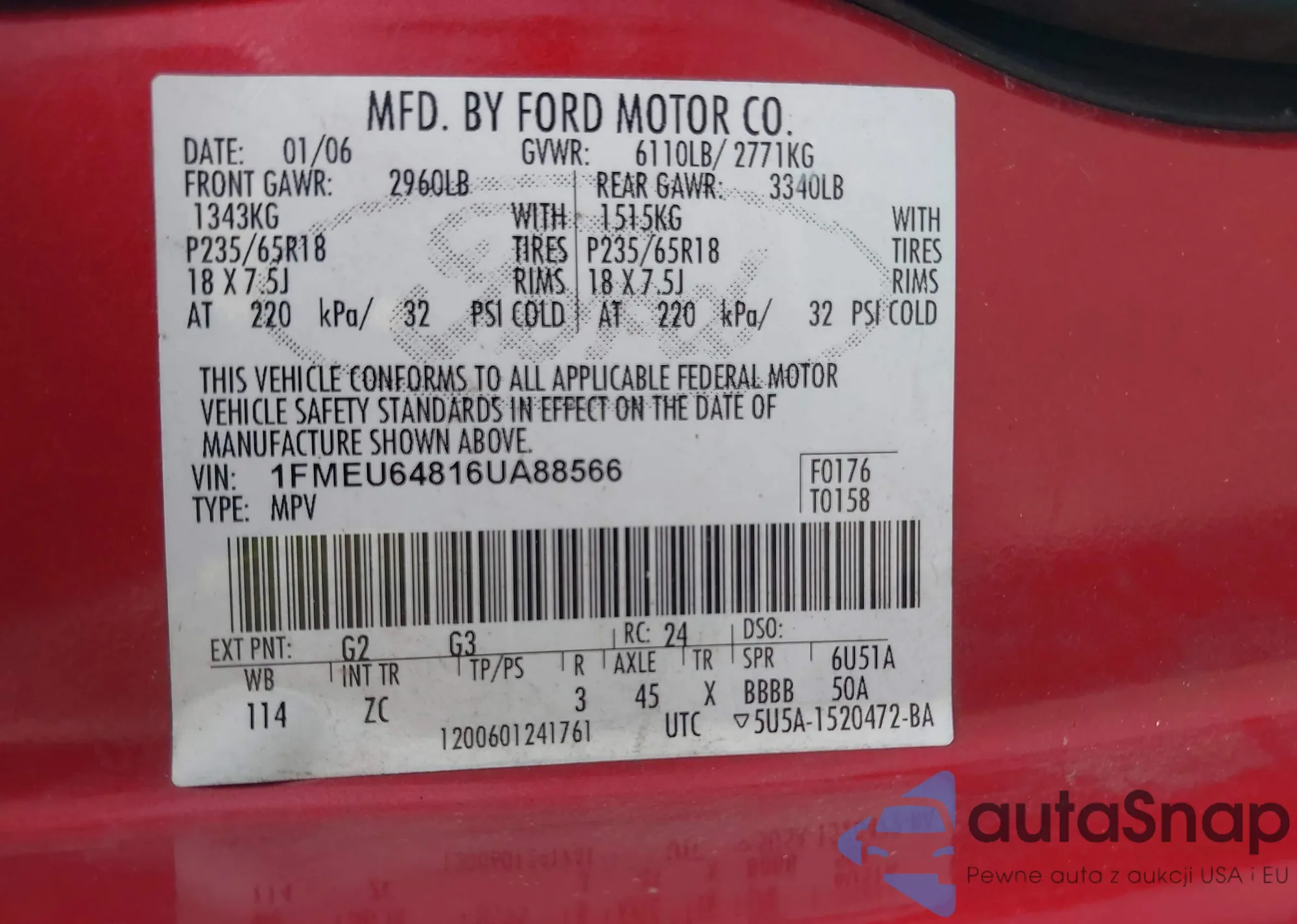 LOT: 43438711 VIN: 1FMPU19506LA03684