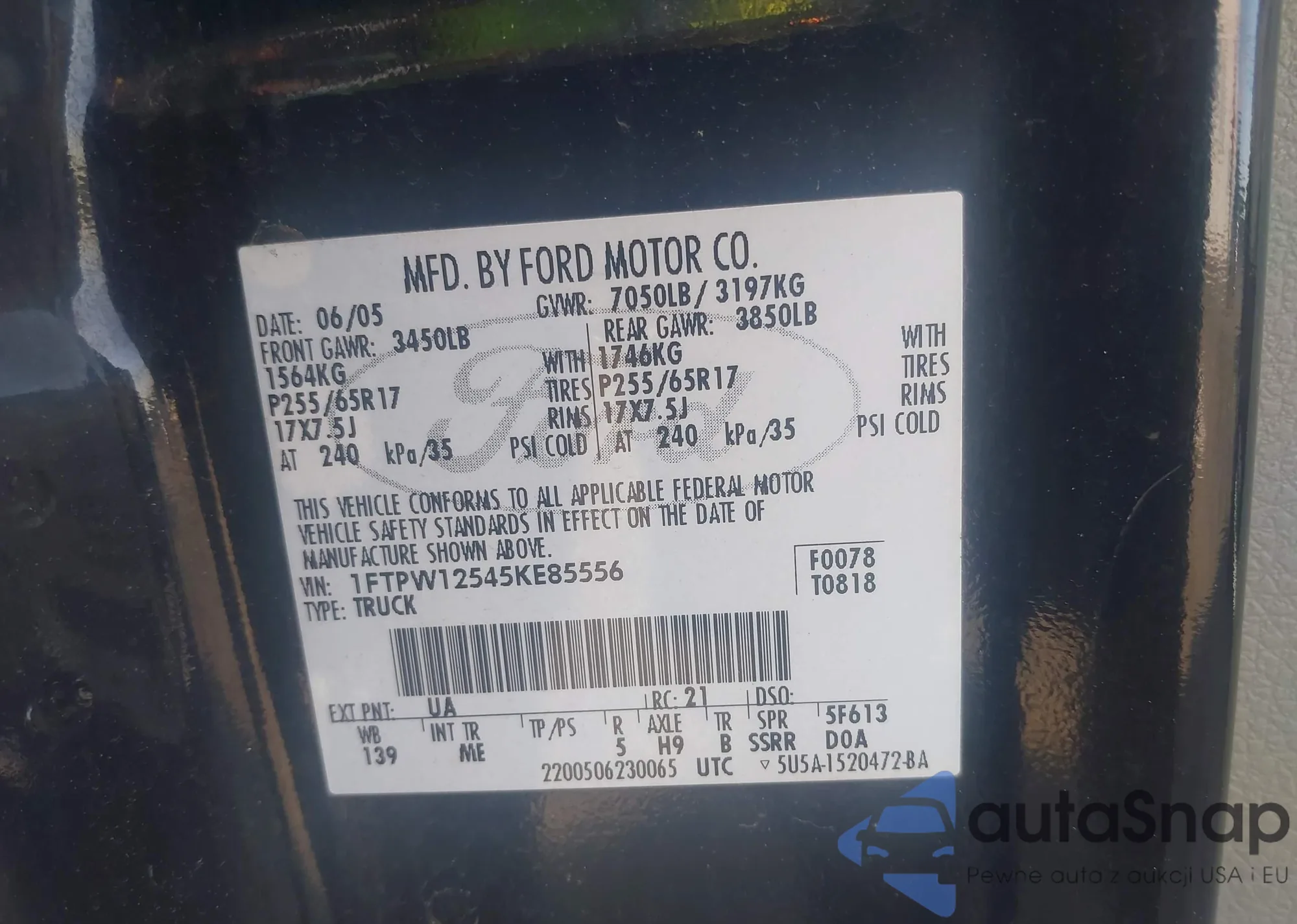 LOT: 43408142 VIN: 1FTPW12545KE85556
