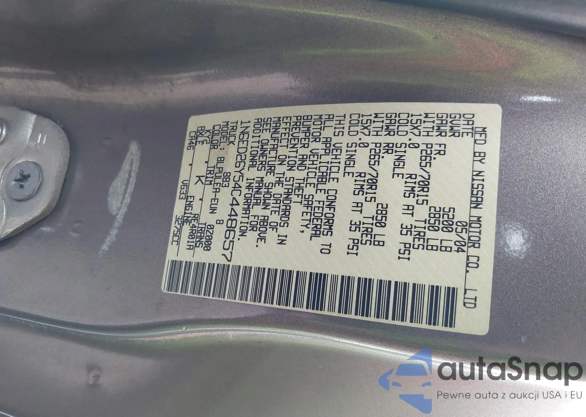 LOT: 43211426 VIN: 1N6ED26Y54C448657