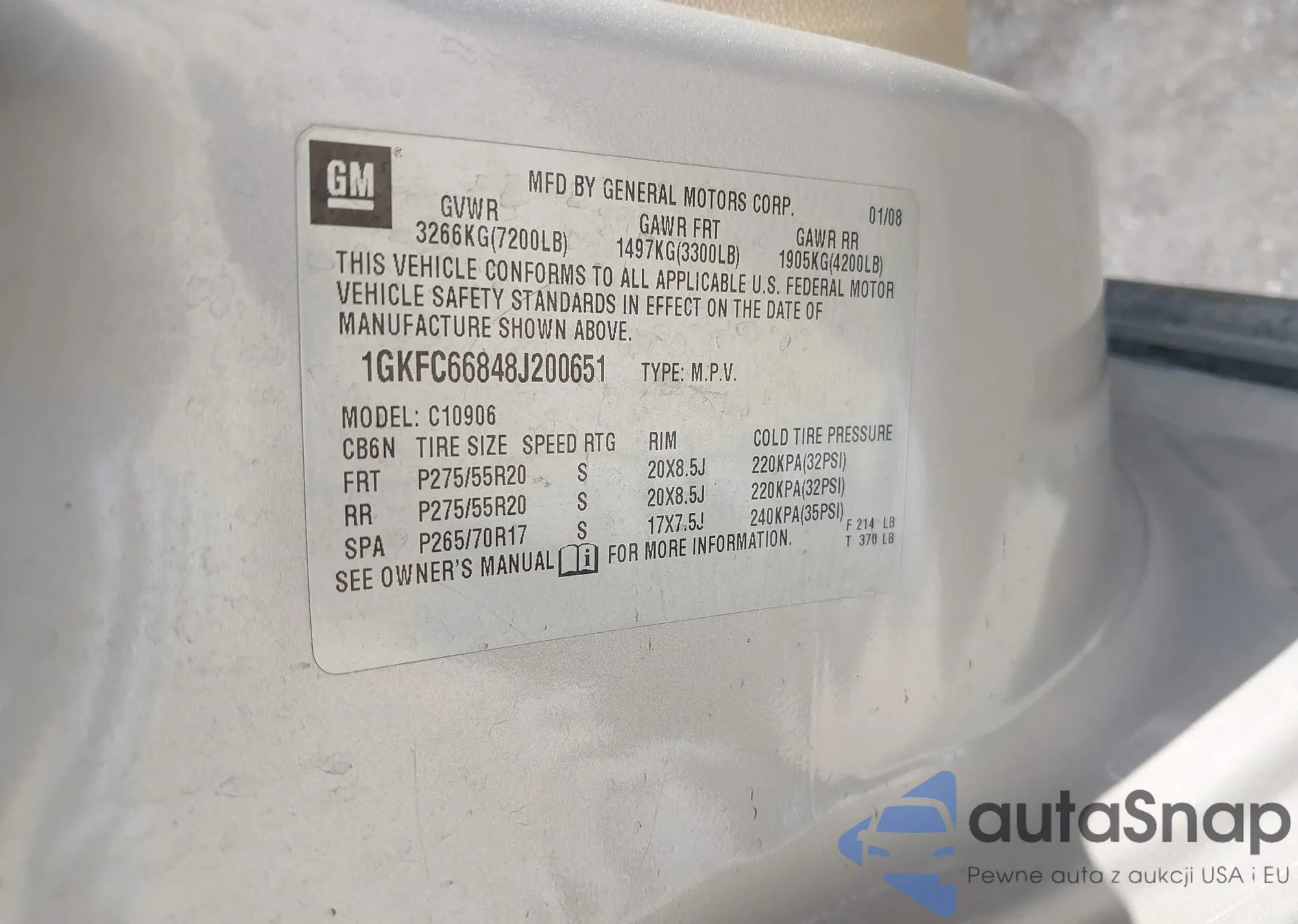LOT: 43274450 VIN: 1GKFC66848J200651