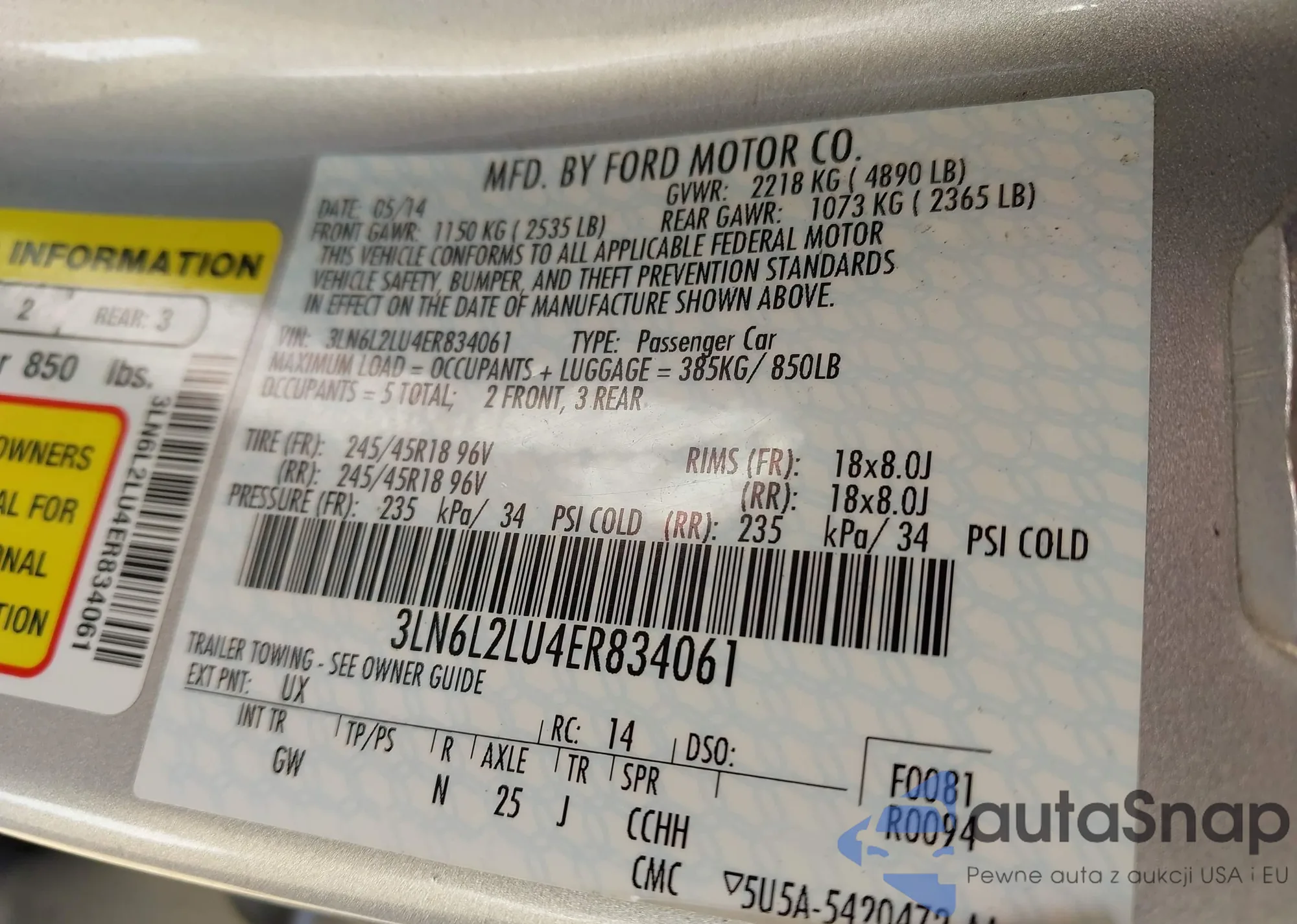 LOT: 43330918 VIN: 1G1FY6S05L4146239