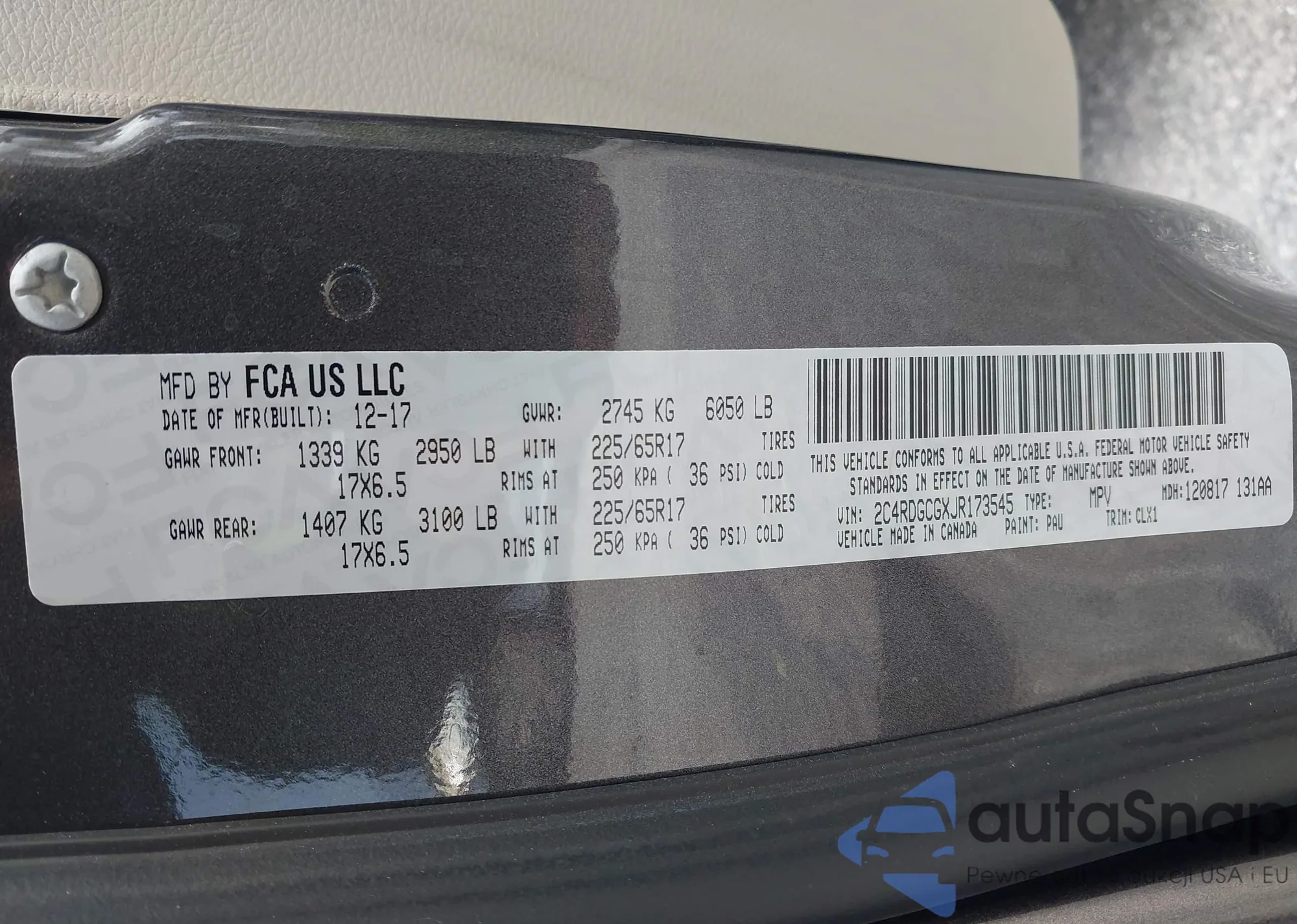 • VIN 2C4RDGCGXJR173545