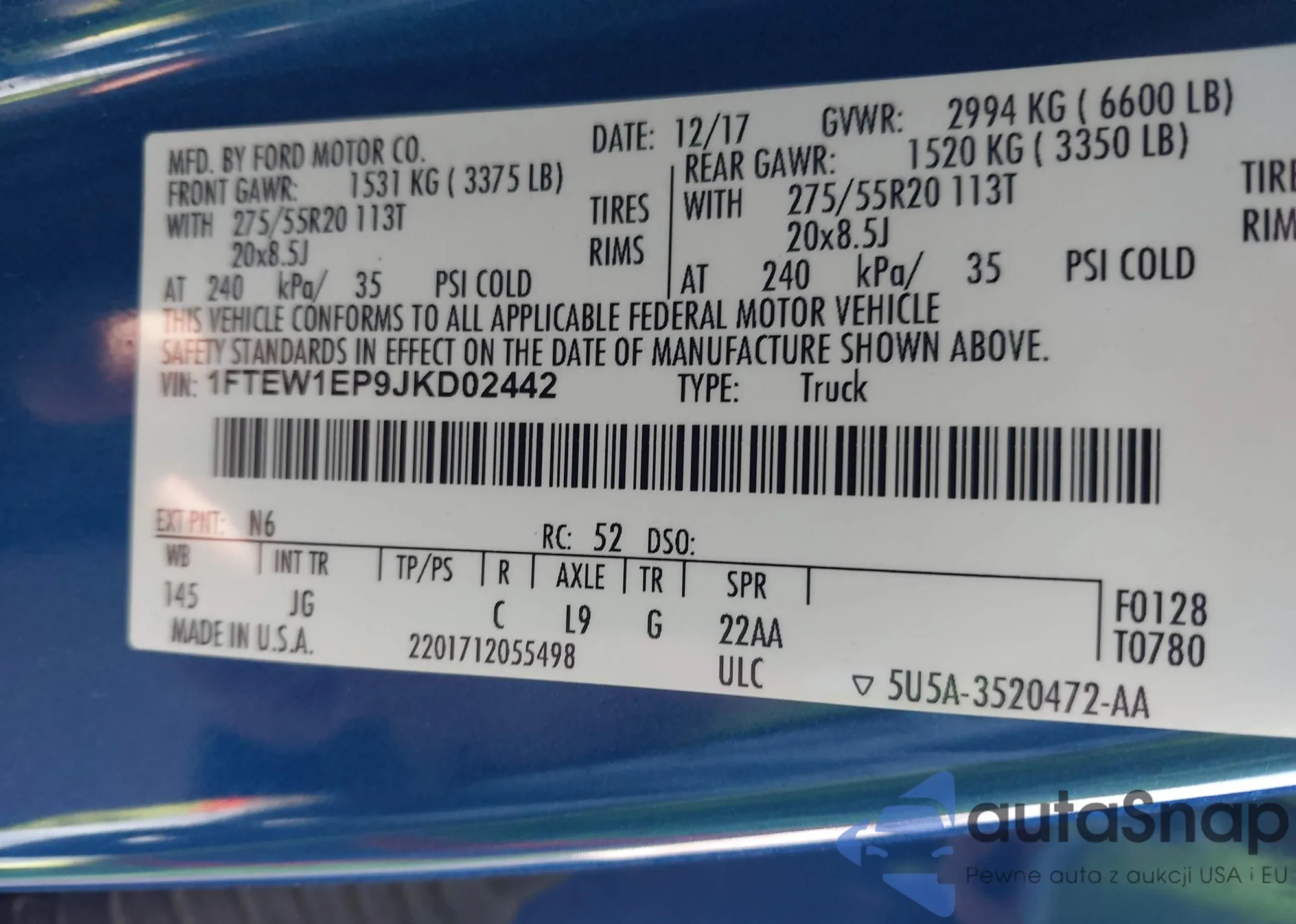 • VIN 1FTEW1EP9JKD02442