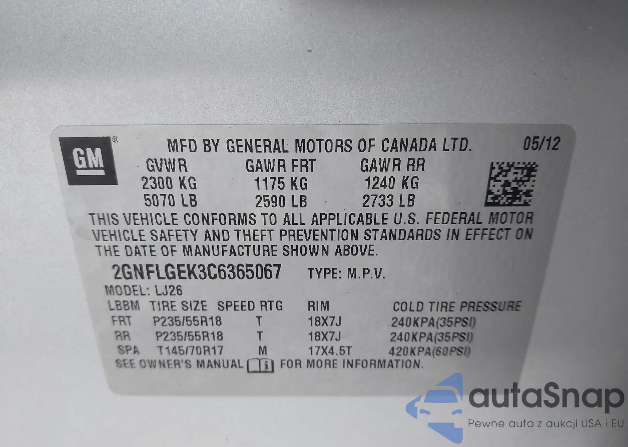 • VIN 2GNFLGEK3C6365067