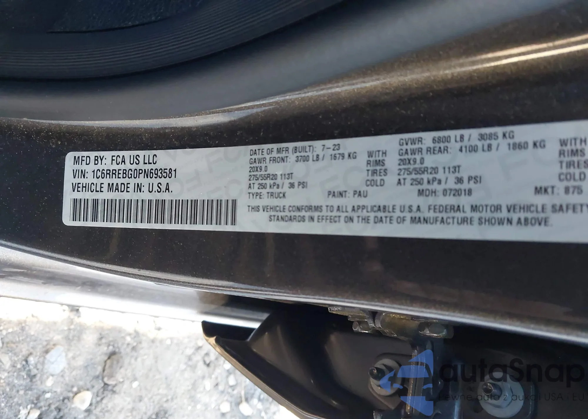 • VIN 1C6RREBG0PN693581