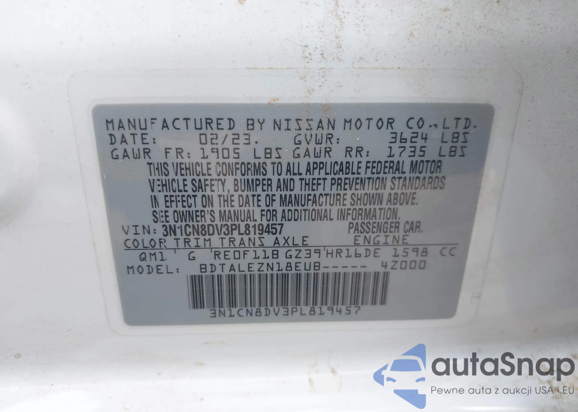 • VIN 3N1CN8DV3PL819457