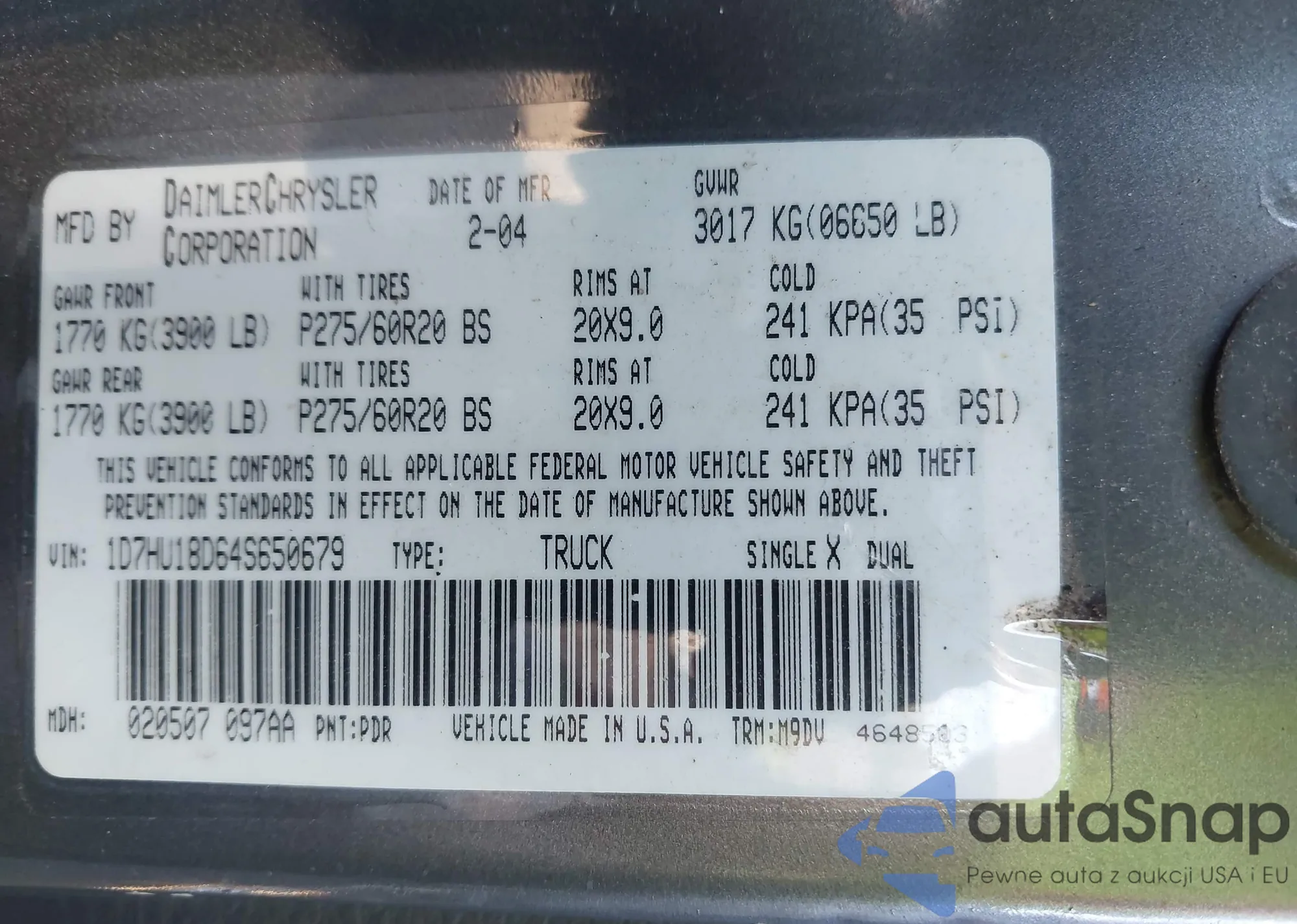 LOT: 43368144 VIN: KMHDU46D58U379570