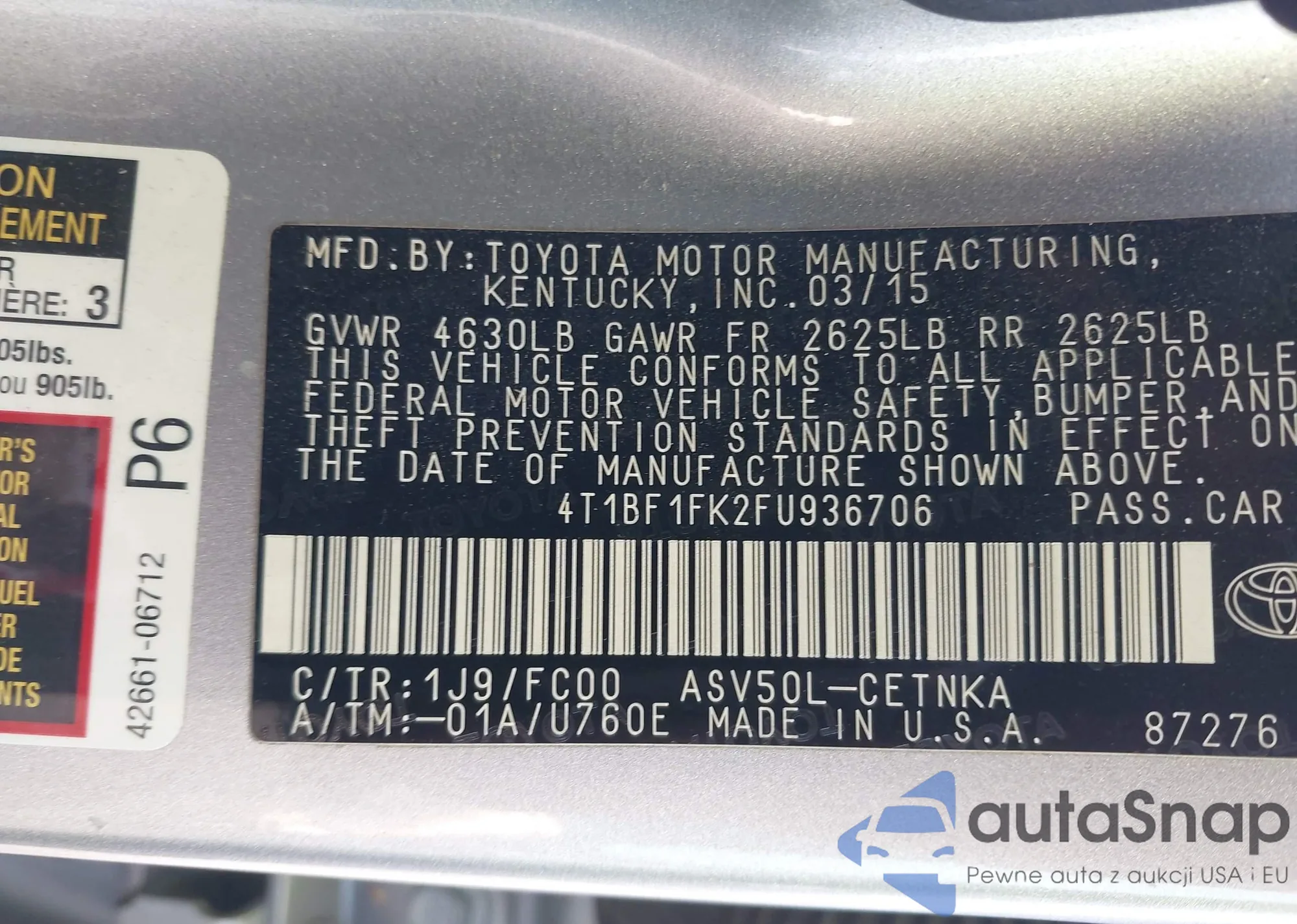 • VIN 1HGCP2F46AA106870