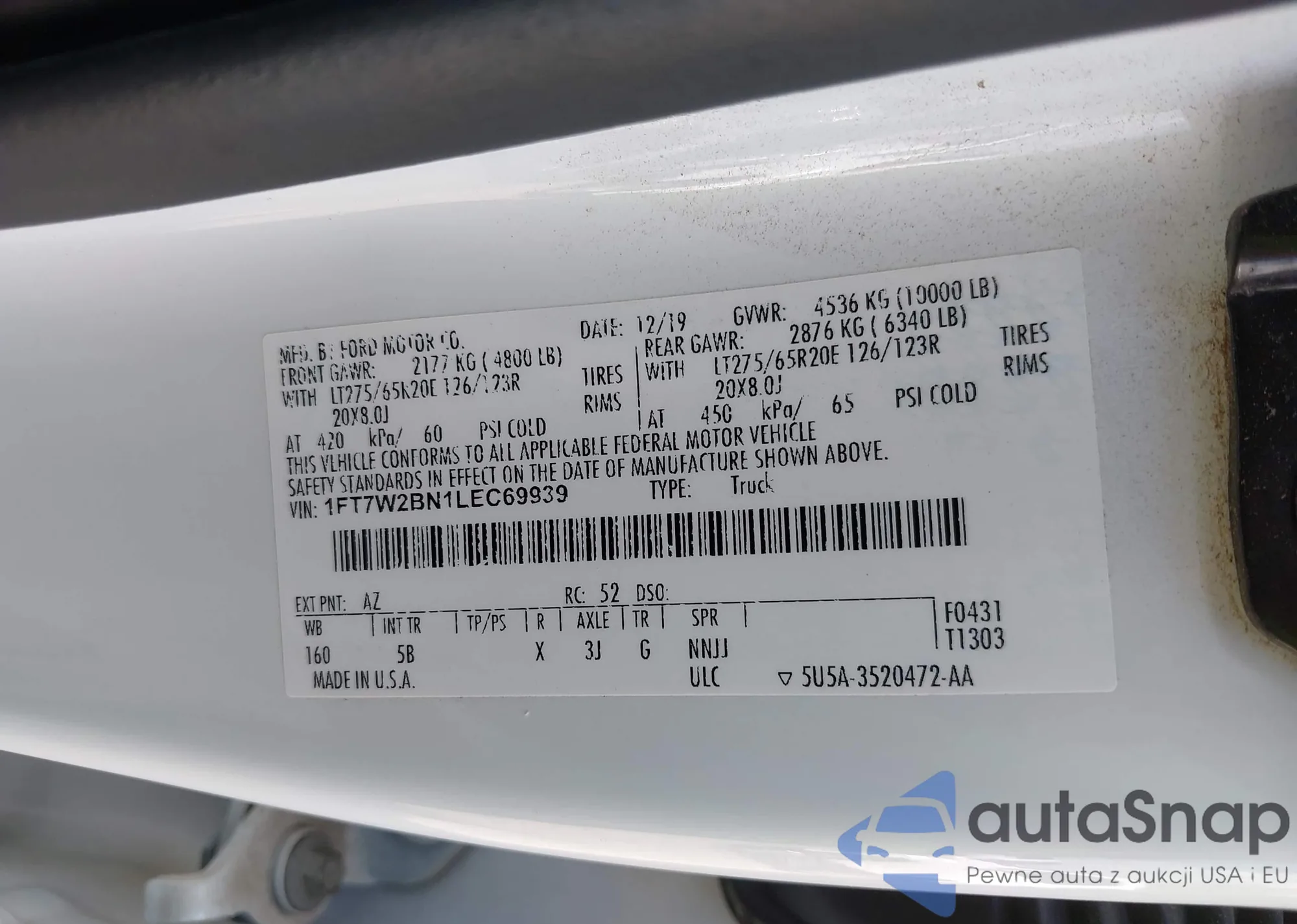 LOT: 43457306 VIN: WBAKF5C51DJ297708