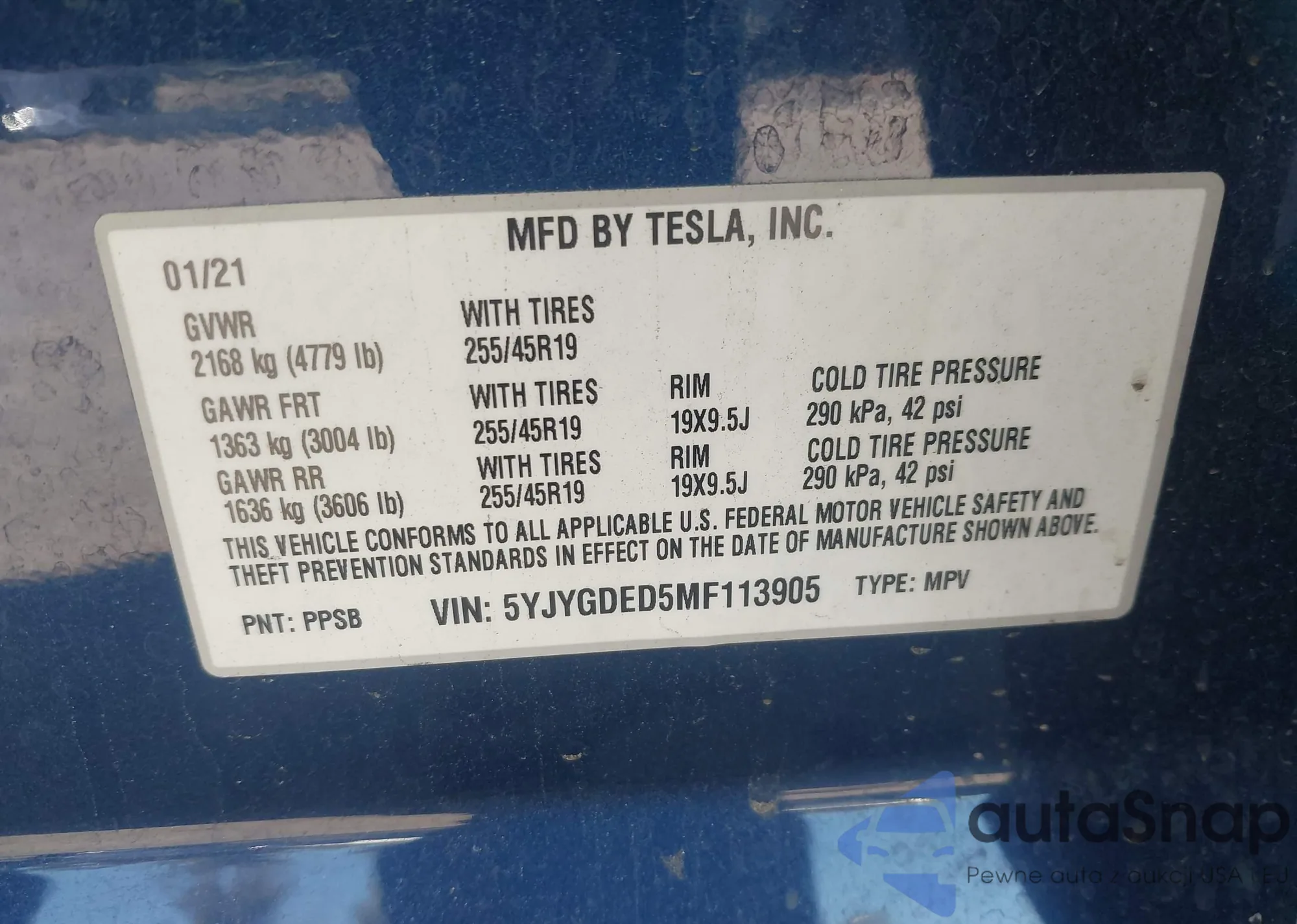 LOT: 43292152 VIN: 5FNRL6H91MB018695