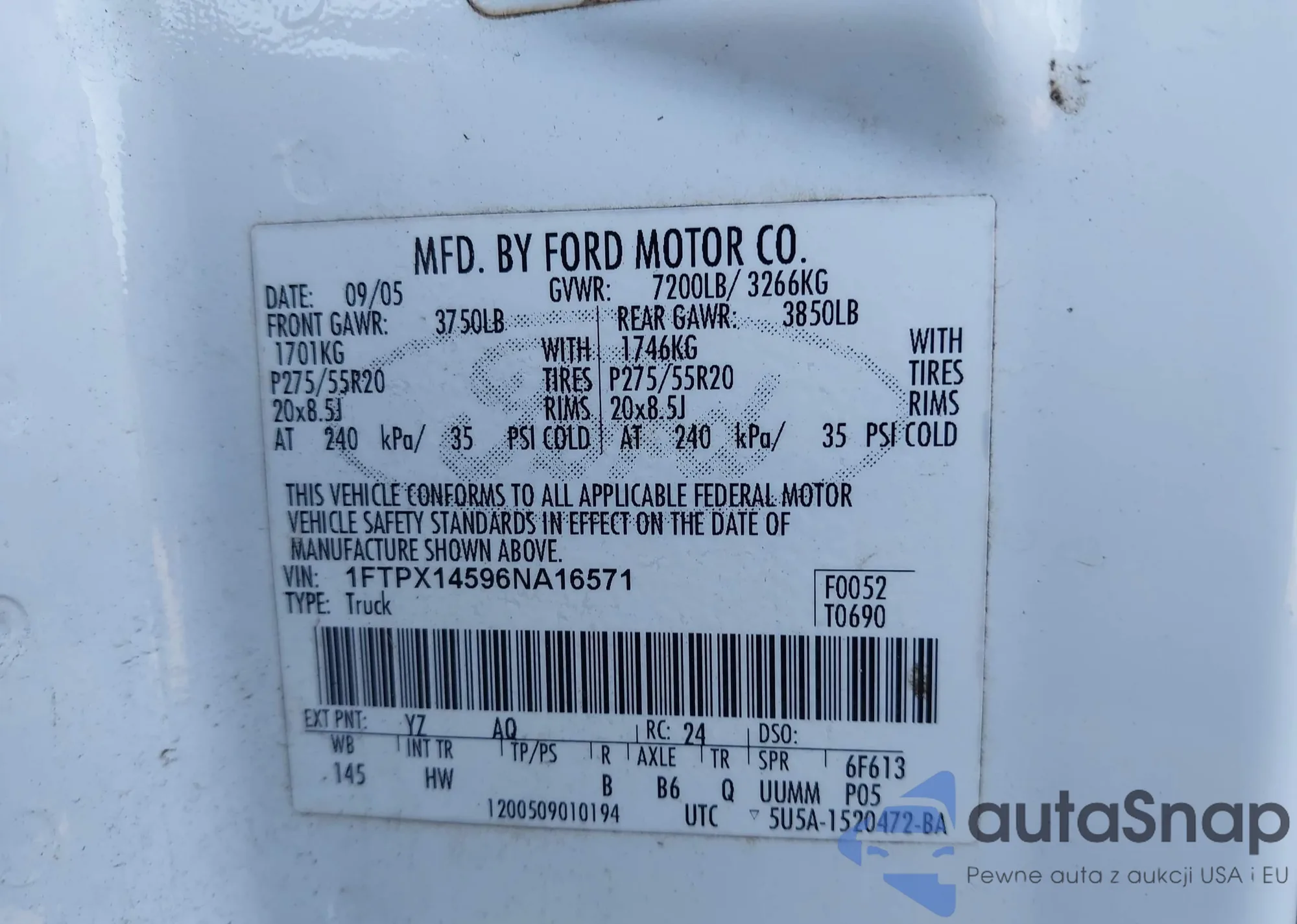 LOT: 43424464 VIN: 1FTPX14596NA16571